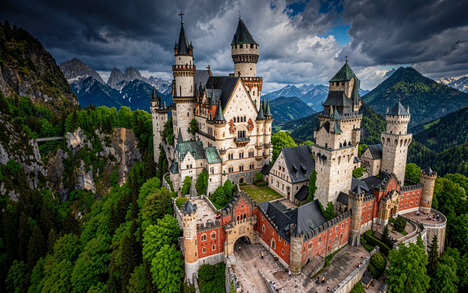 Замок Нойшванштайн в горах при грозовом небе