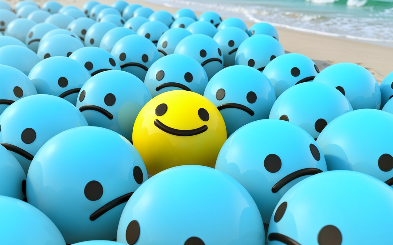 Желтый улыбающийся смайл среди грустных синих лиц