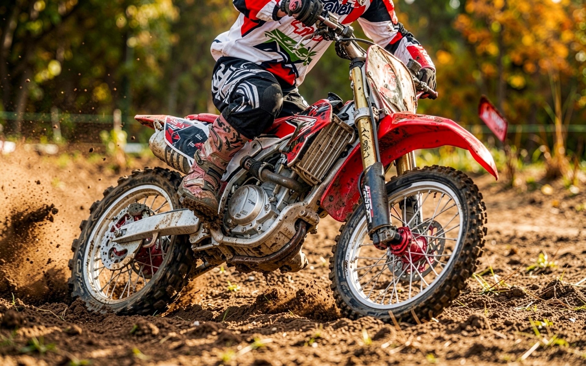 Мотоцикл кросс красный грязный трек