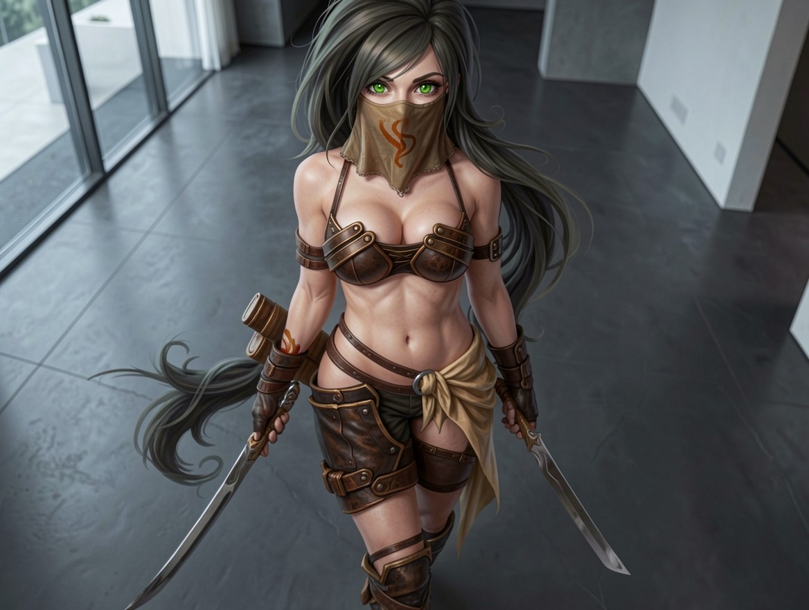 Девушка ниндзя в кожаной броне интерьер
