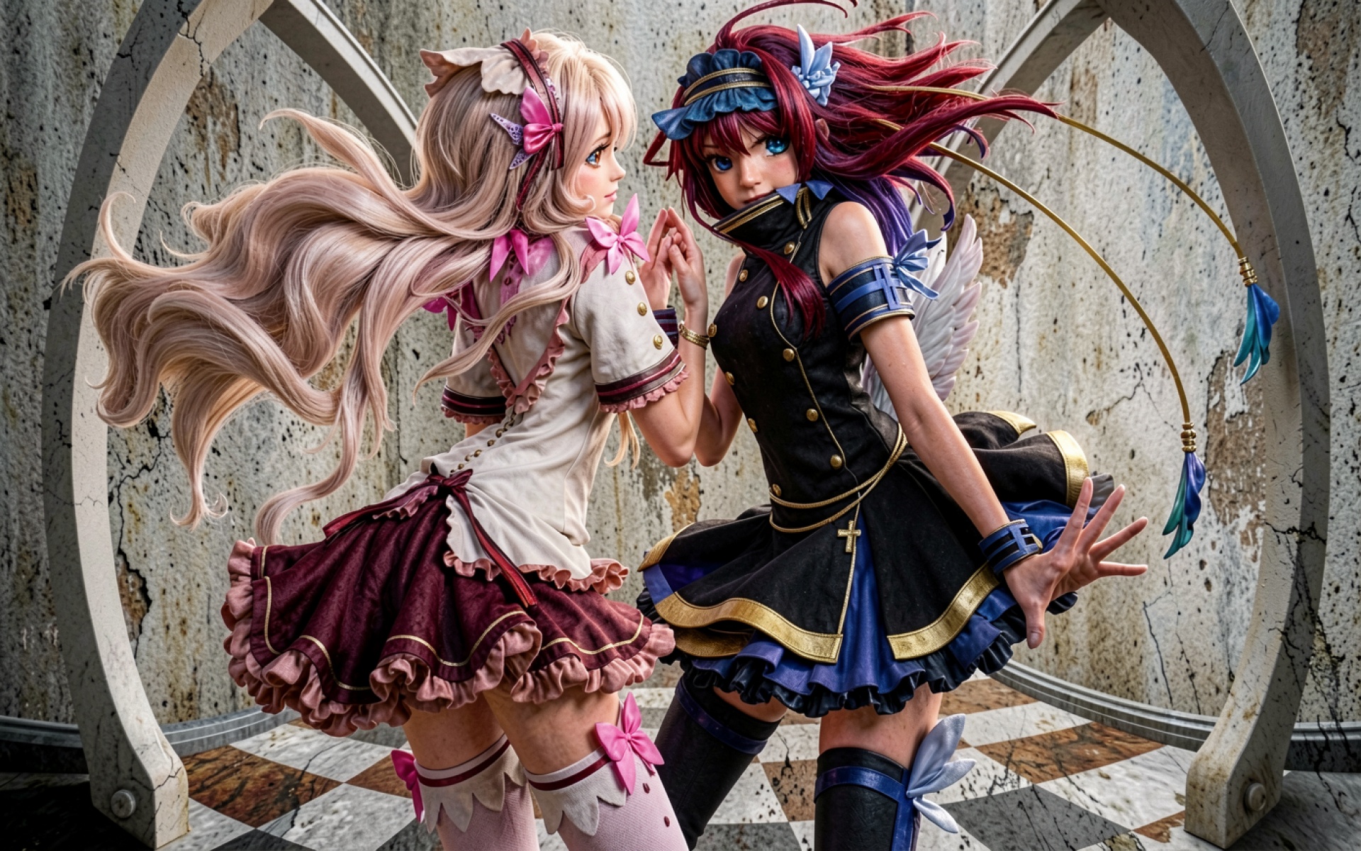 Две девушки аниме в готическом зале