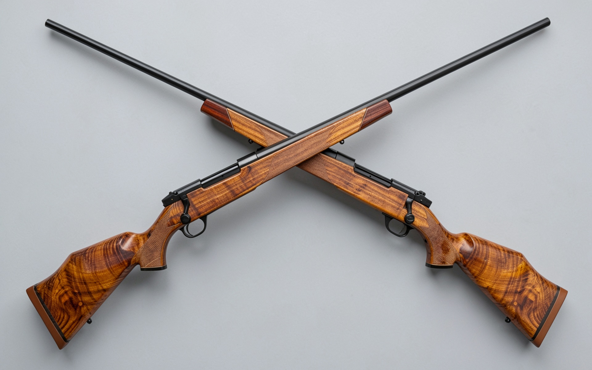 Две охотничьи винтовки из дерева на сером