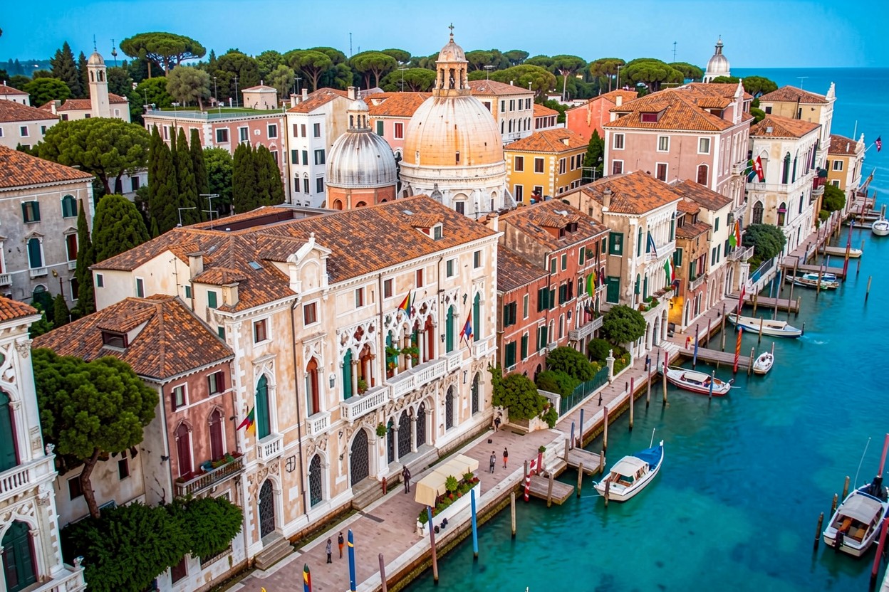 Панорама Венеции с разноцветными домами и каналами