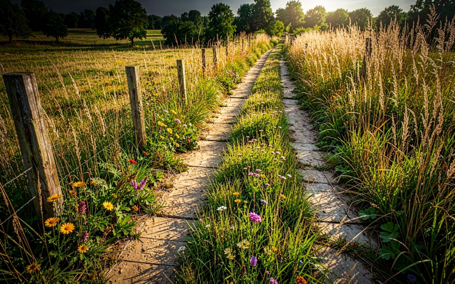 Заброшенная бетонная дорога в летнем поле