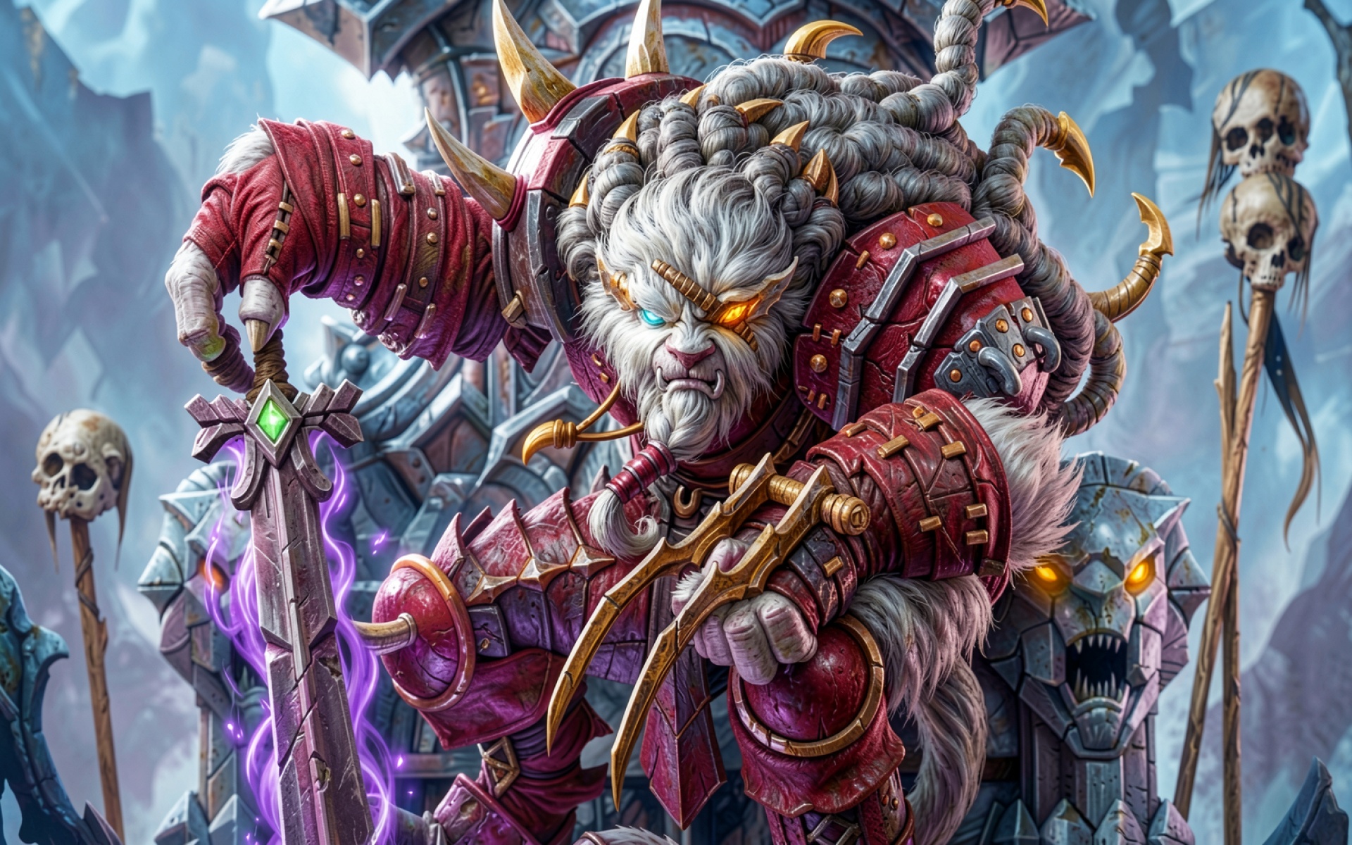 Боевой лев в красных доспехах с мечом