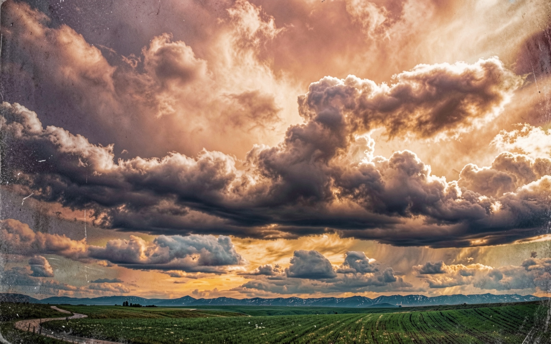 Драматичные грозовые облака над зеленым полем