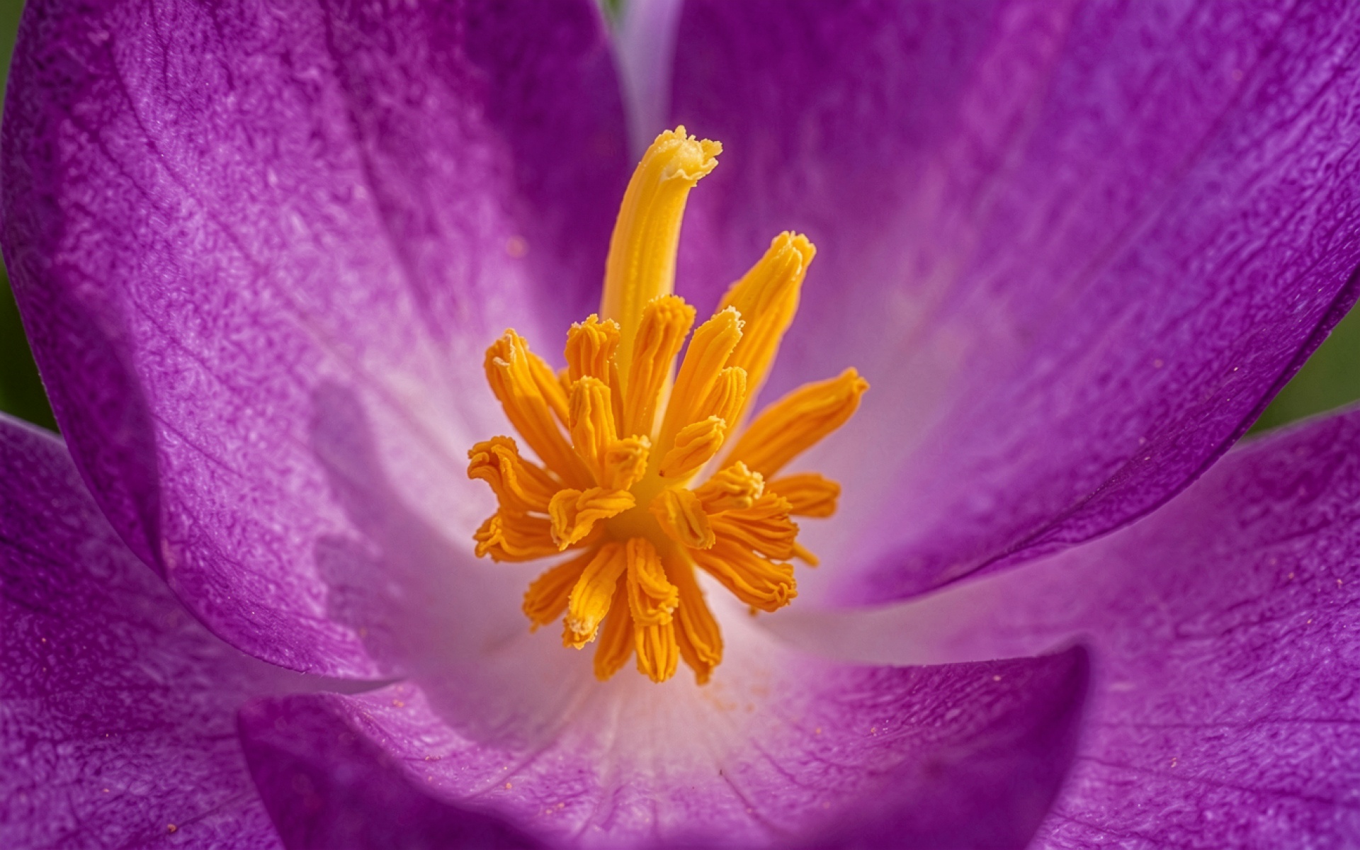Макросъемка фиолетового цветка с желтой сердцевиной