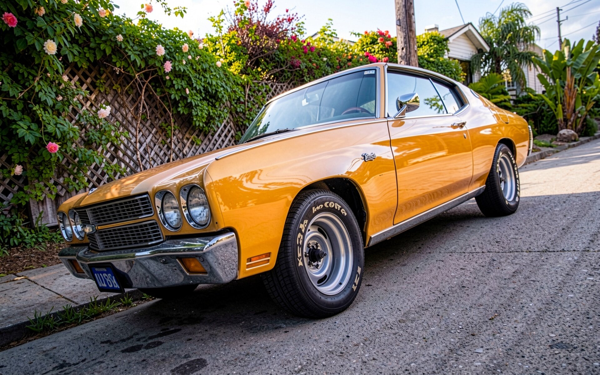 Желтый ретро автомобиль на городской улице