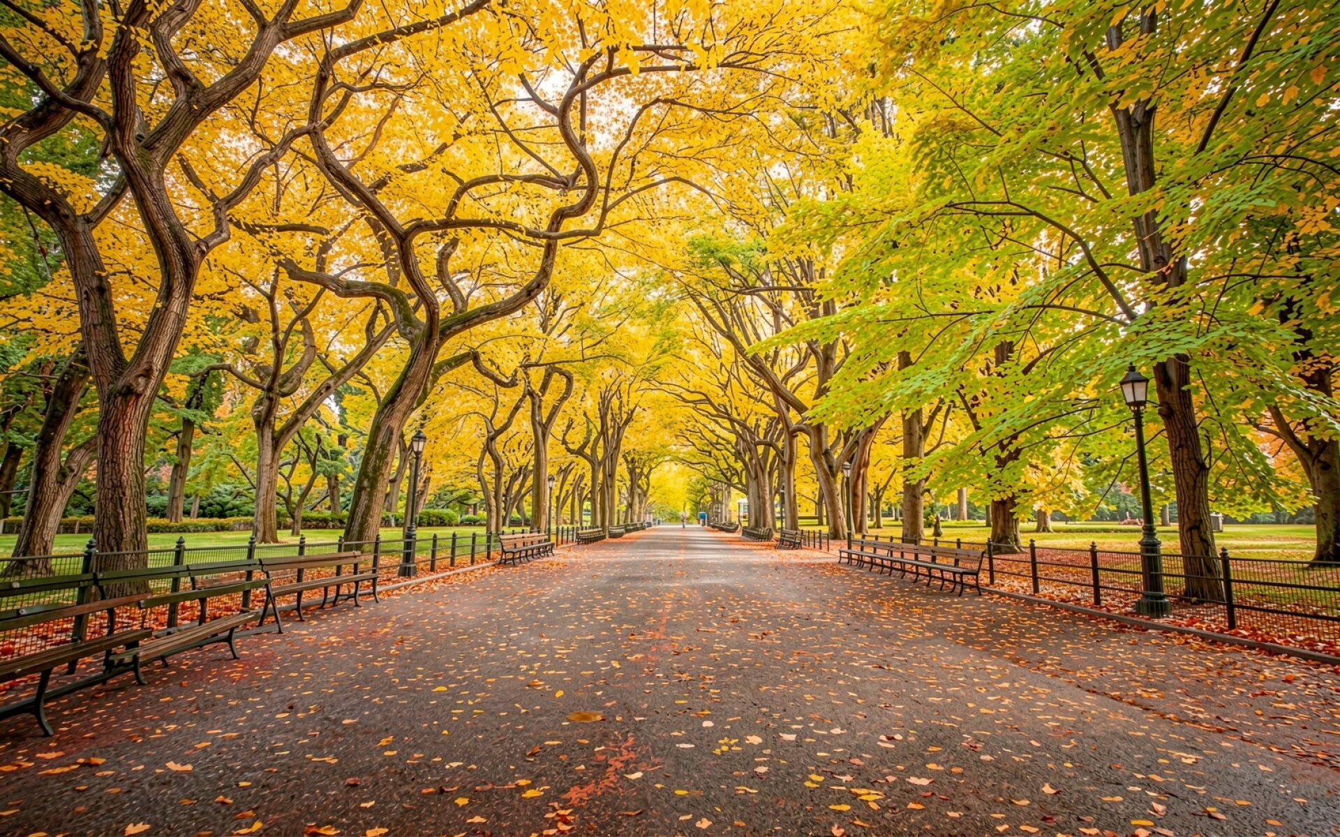 Желтыми аллеей обои на пк и телефон