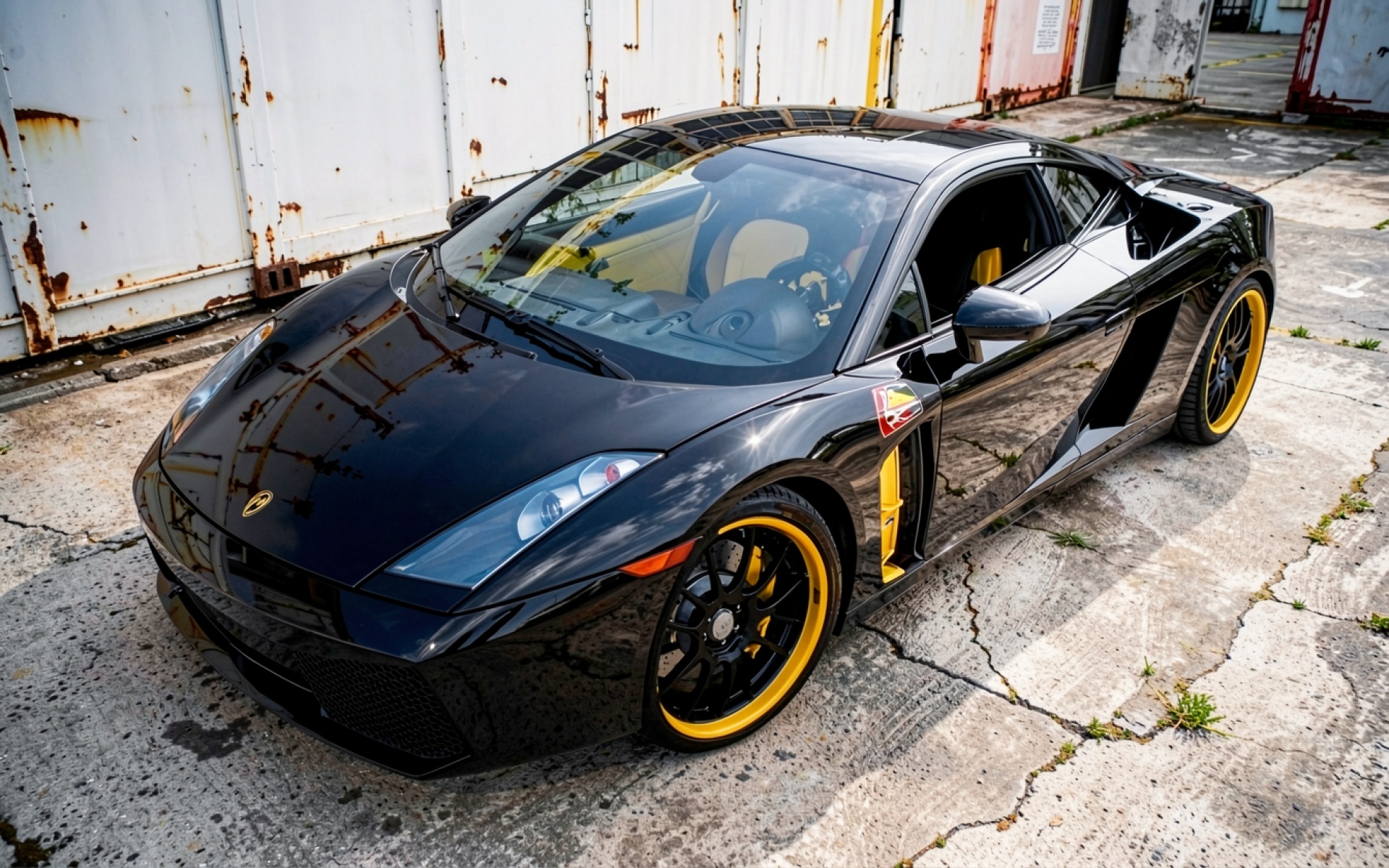 Черный суперкар Lamborghini с желтыми дисками