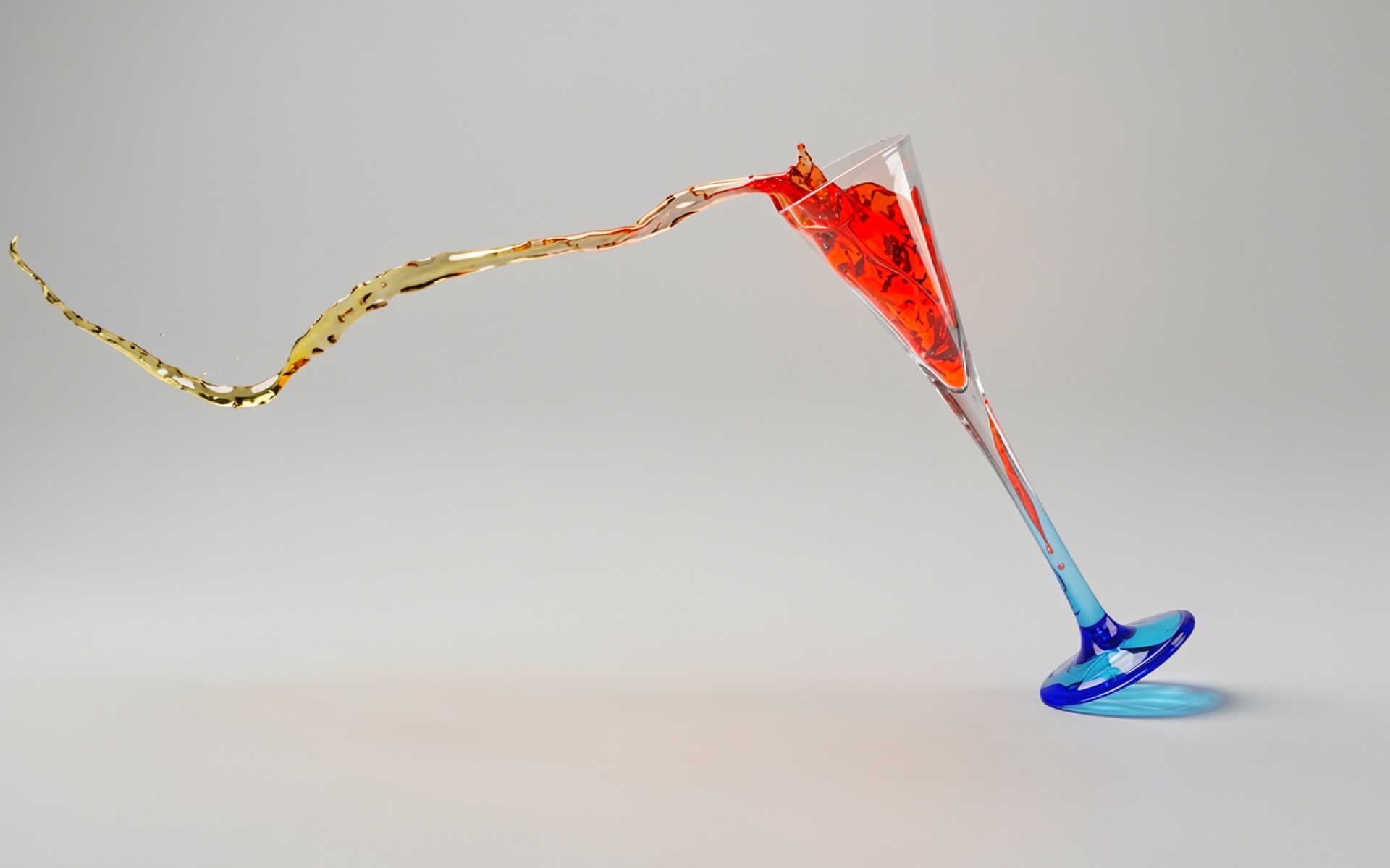 Стеклянный бокал с разноцветной жидкостью в минимализме