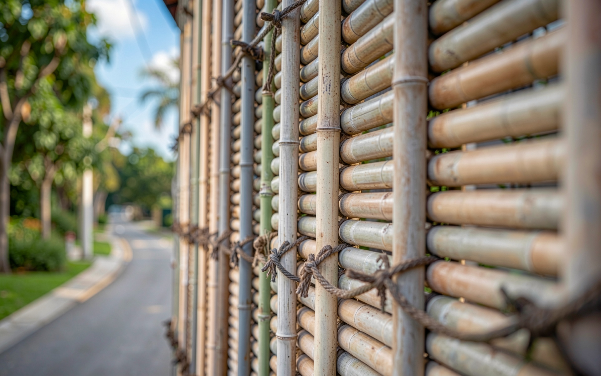 Забор из бамбуковых стеблей в тропическом парке
