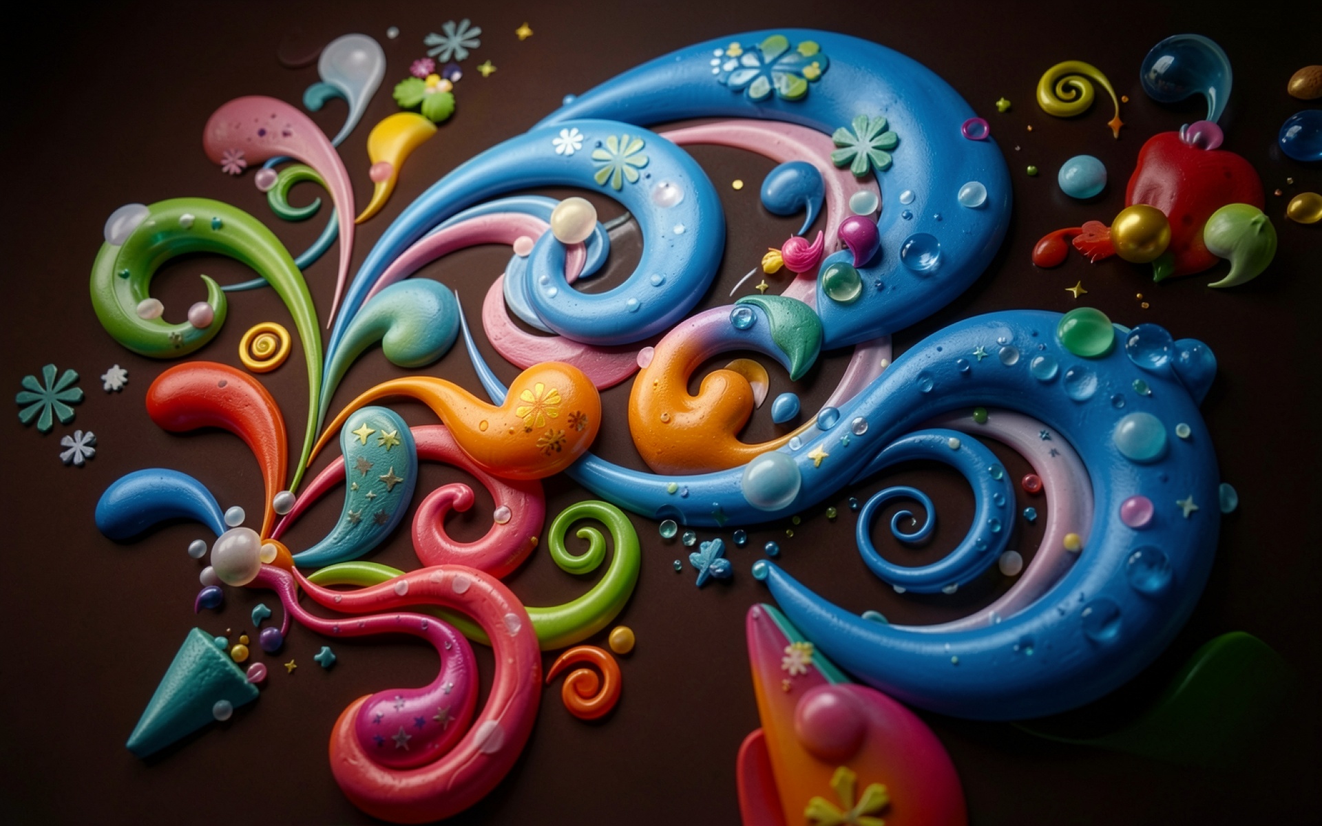 Цветные абстрактные завитки на темном фоне