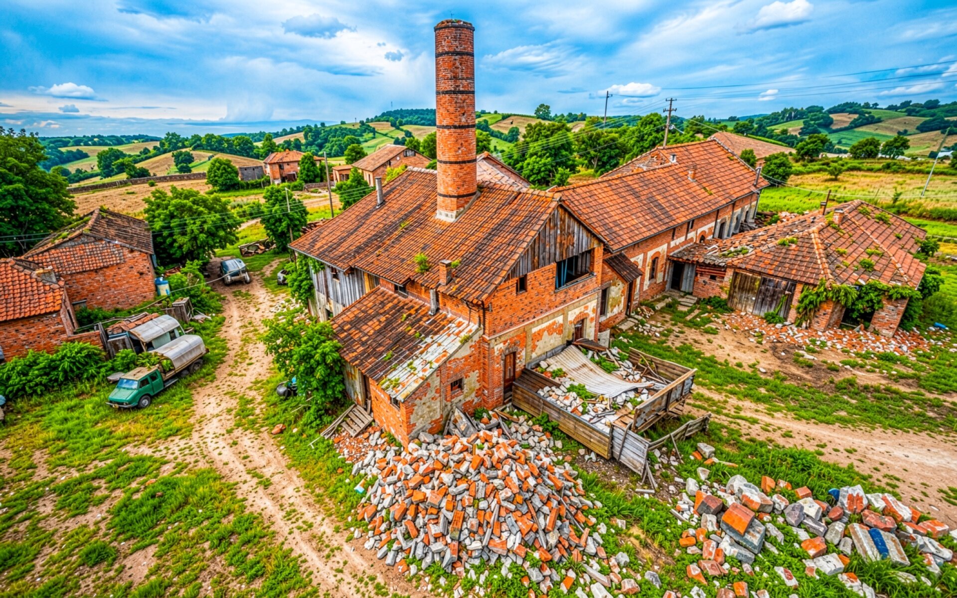 Заброшенный кирпичный завод в сельской местности