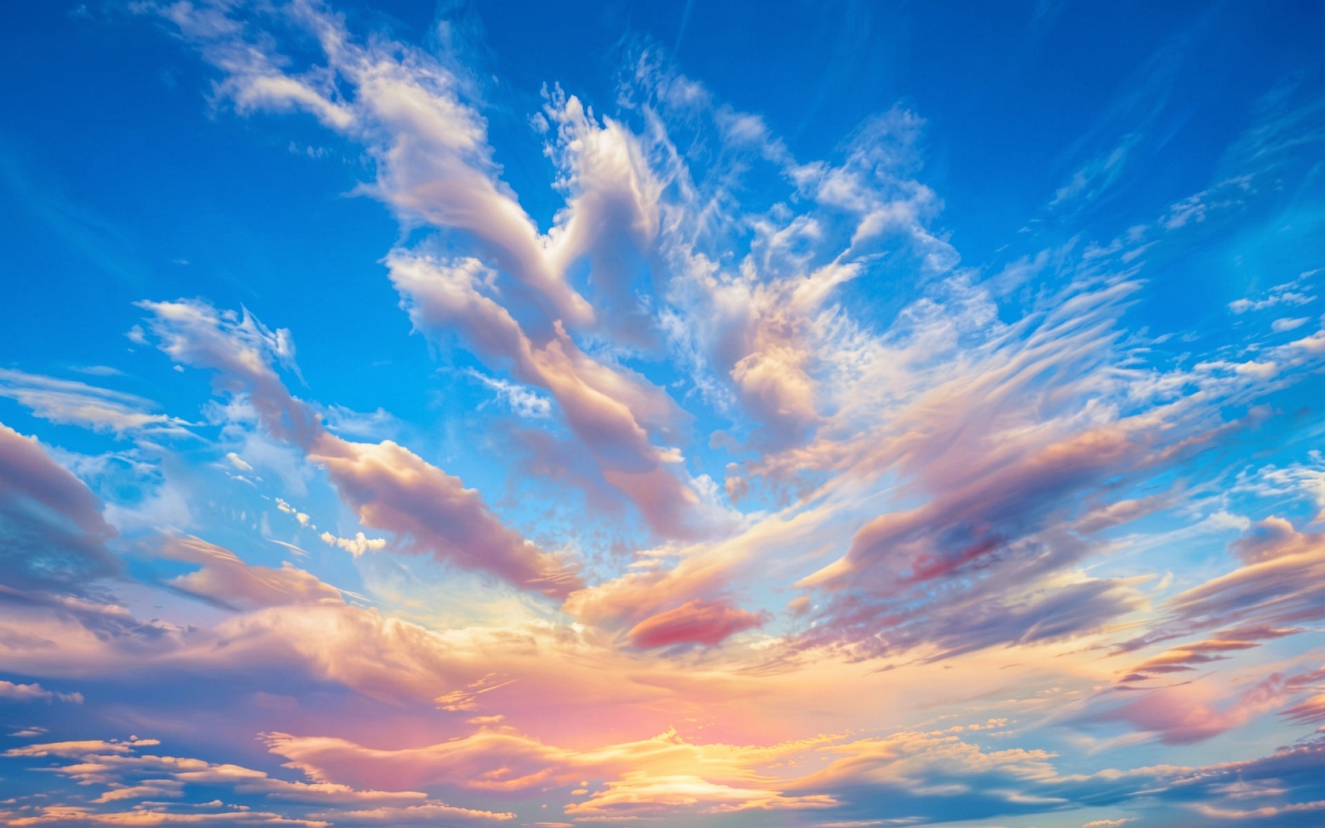 Закат в синем небе с розовыми облаками