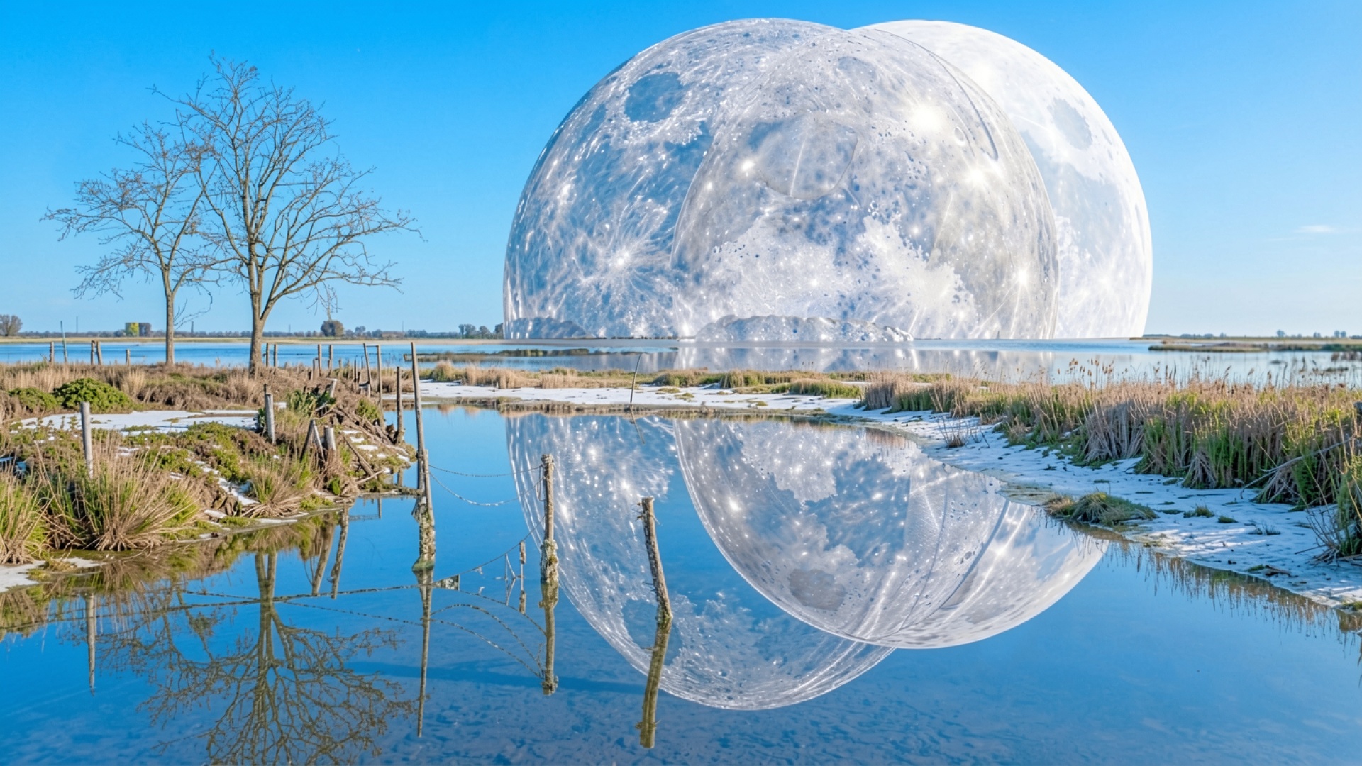 Две огромные луны над замерзшим озером