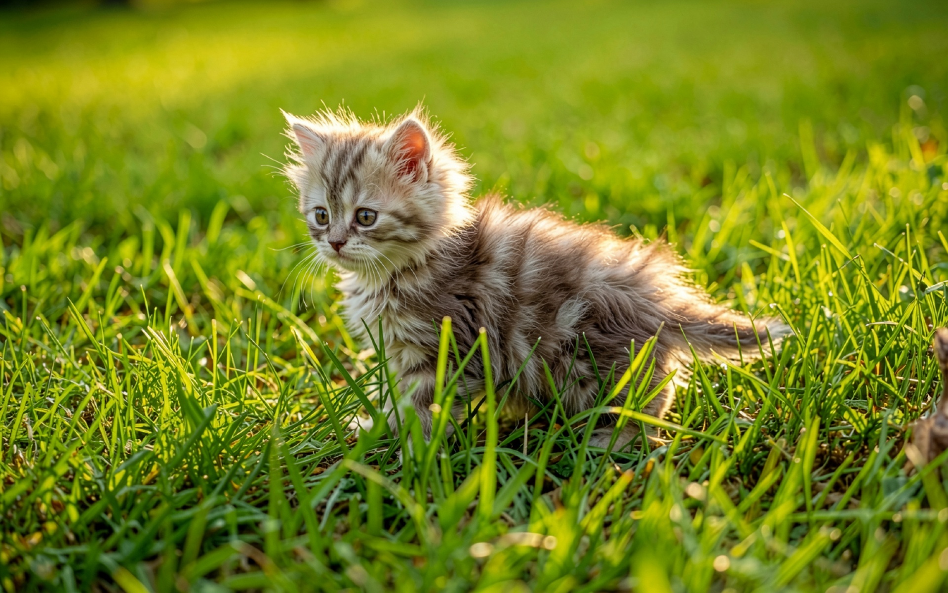Рыжий полосатый котенок в зеленой траве