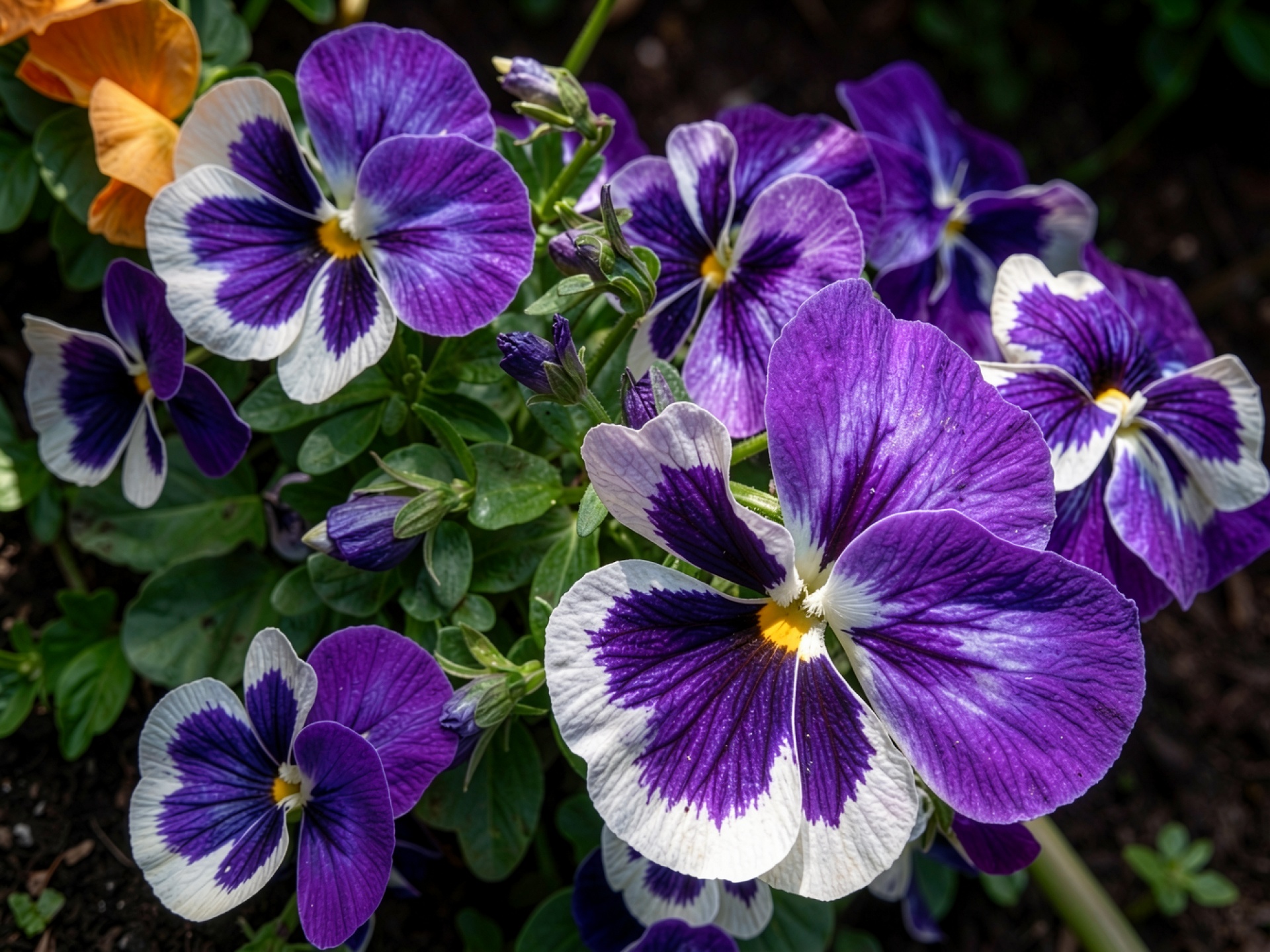 Фиолетовые цветы виолы в зеленом саду