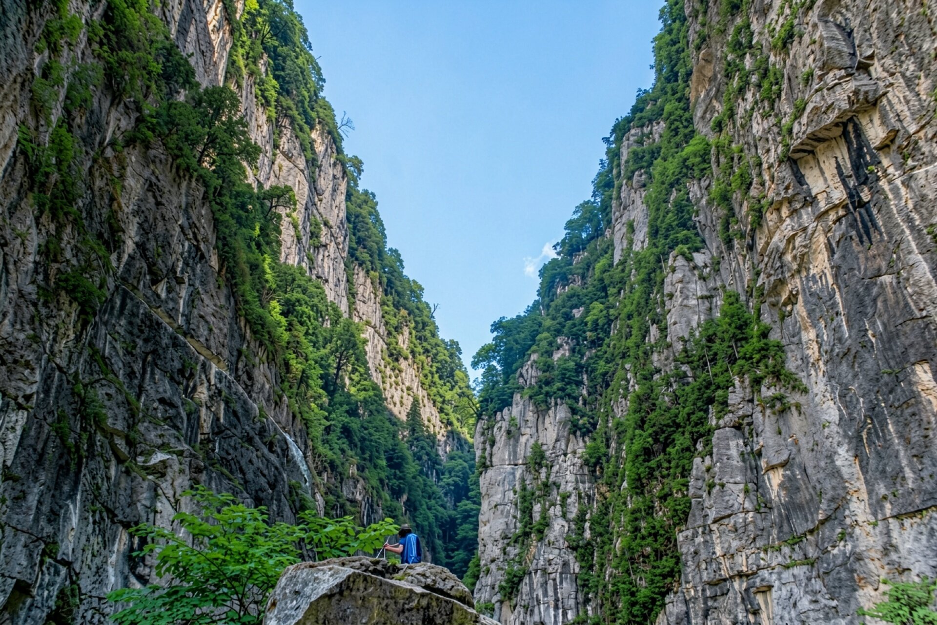 Высокие скалы в глубоком зеленом каньоне