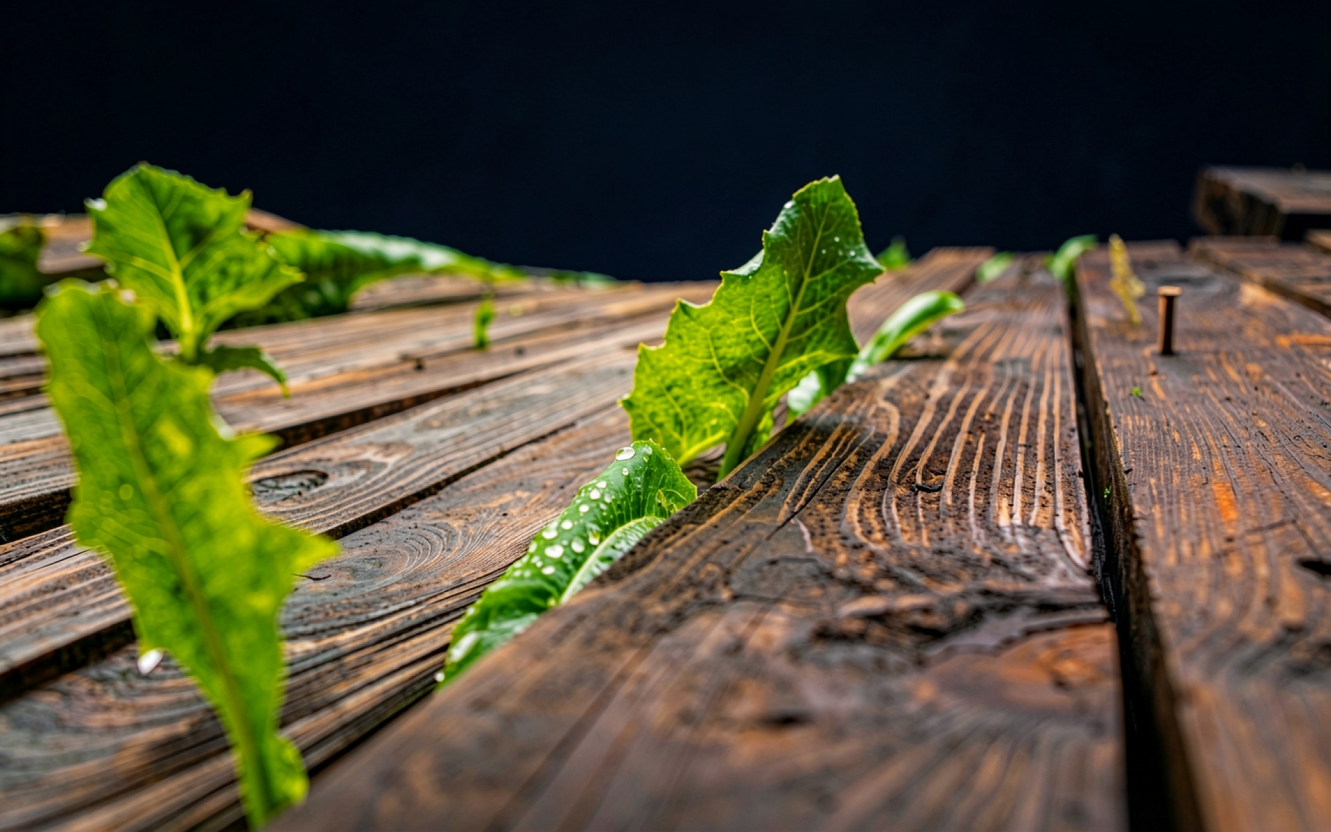 Зеленые листья сквозь старые деревянные доски