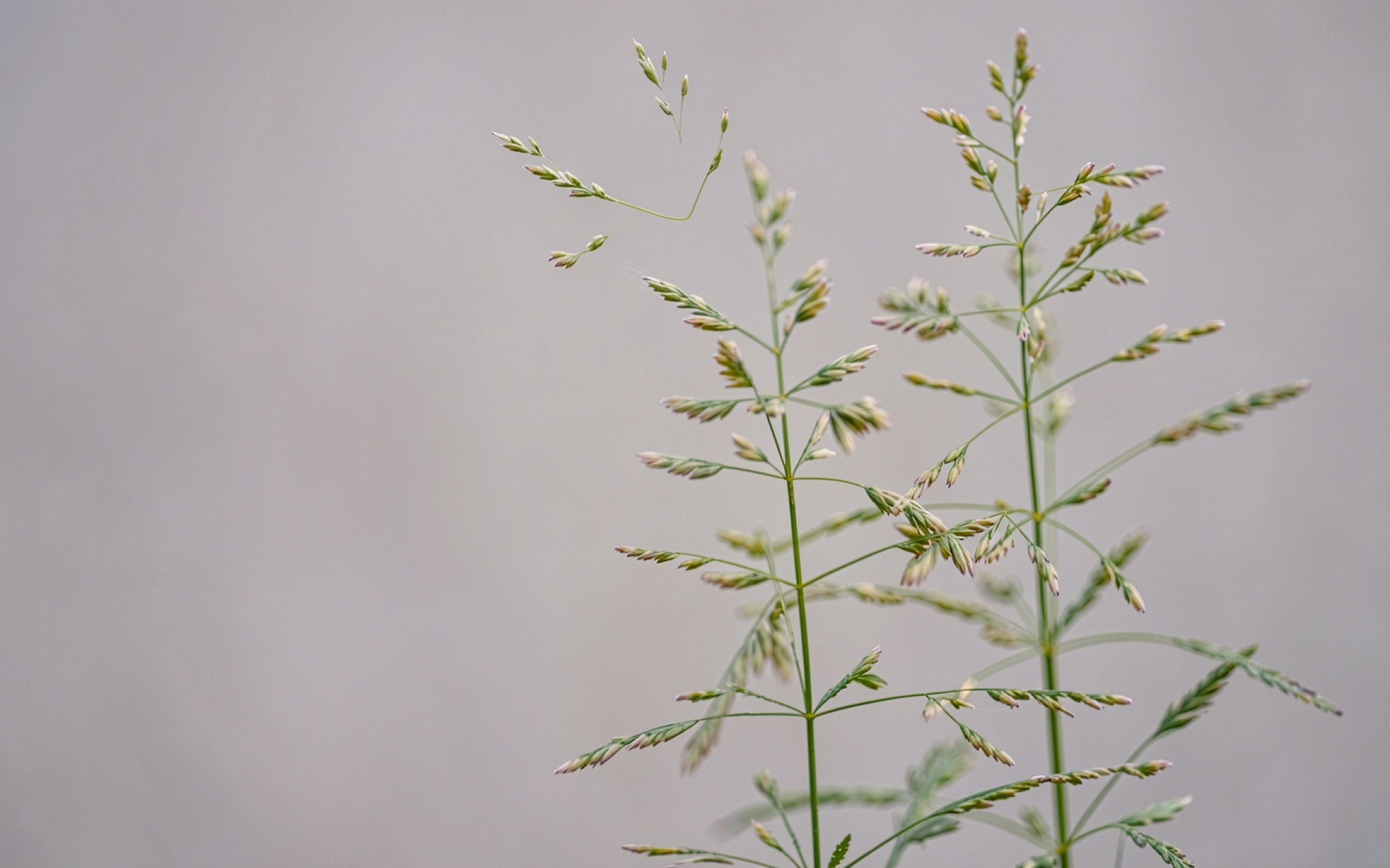 Зеленые колосья травы на сером фоне
