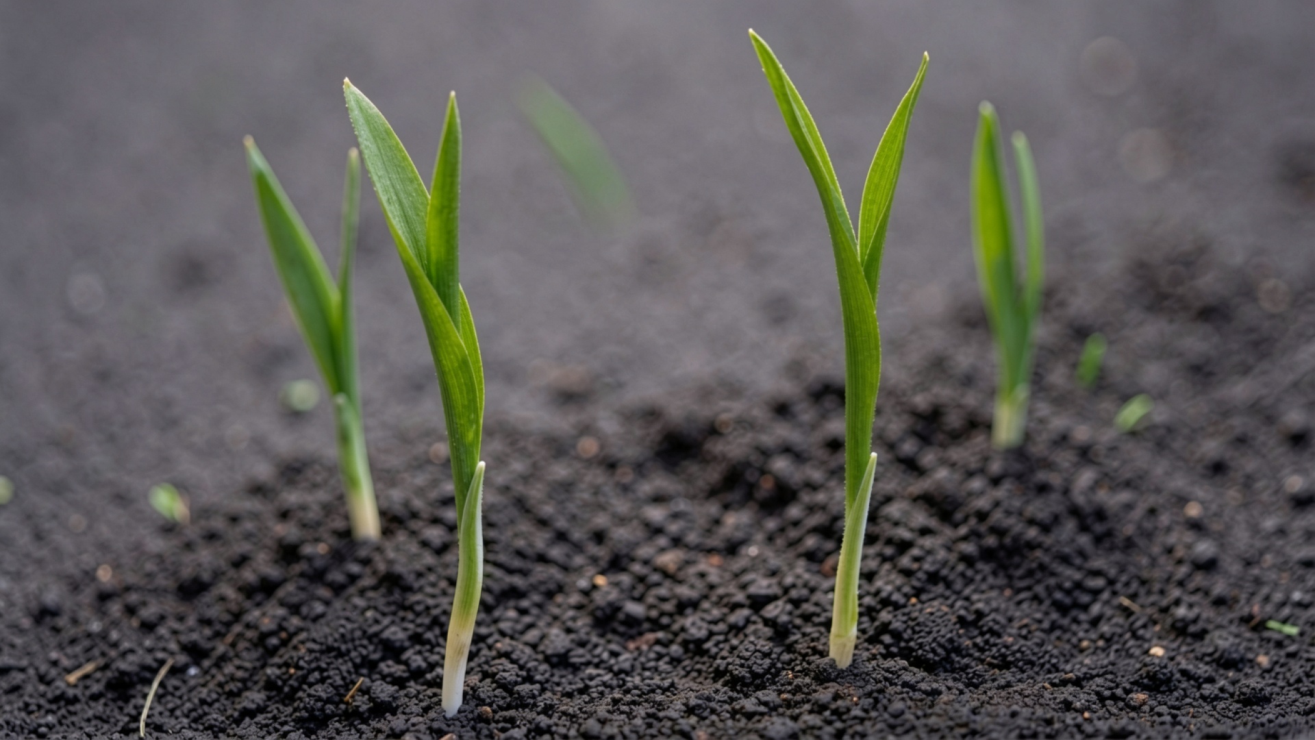 Зеленые ростки пшеницы в темной плодородной почве
