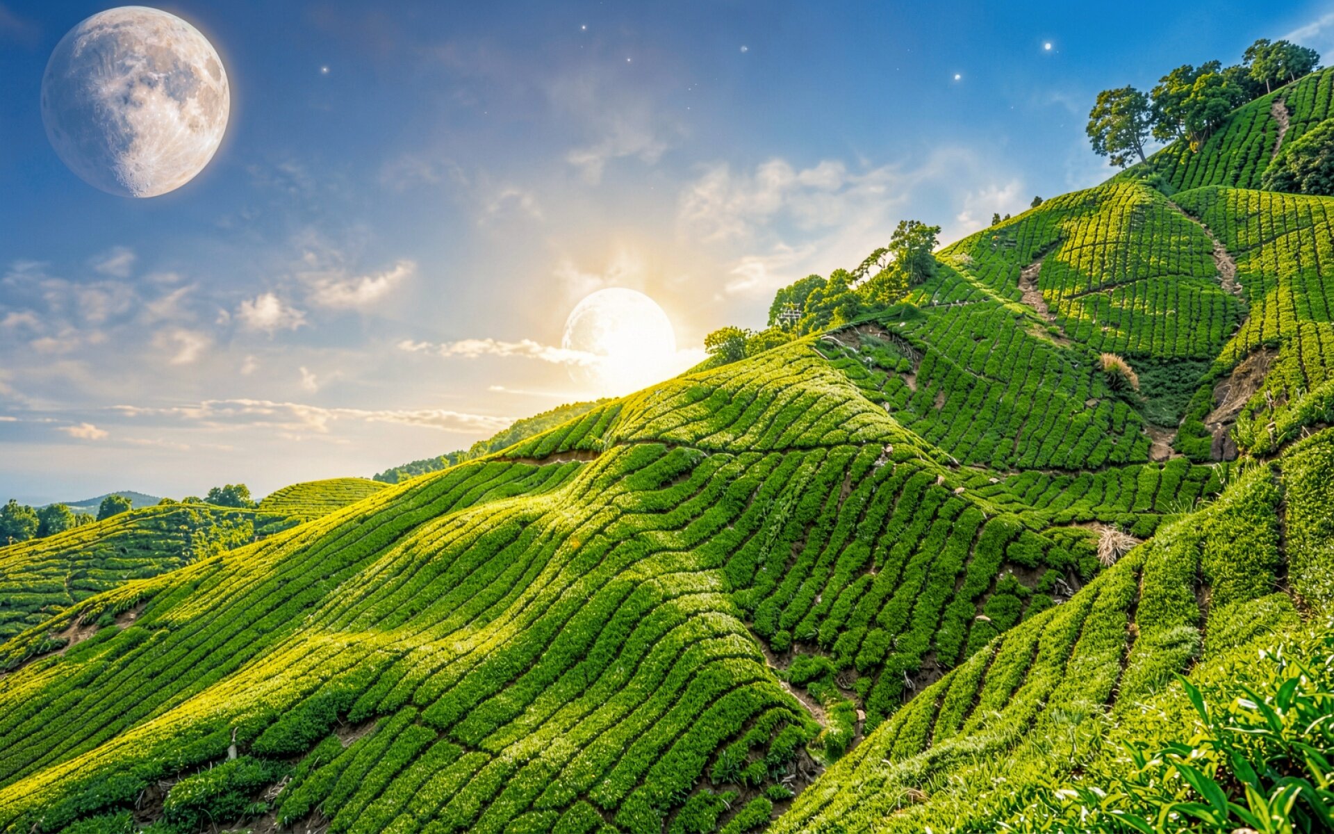 Чайная плантация зеленый холм две луны