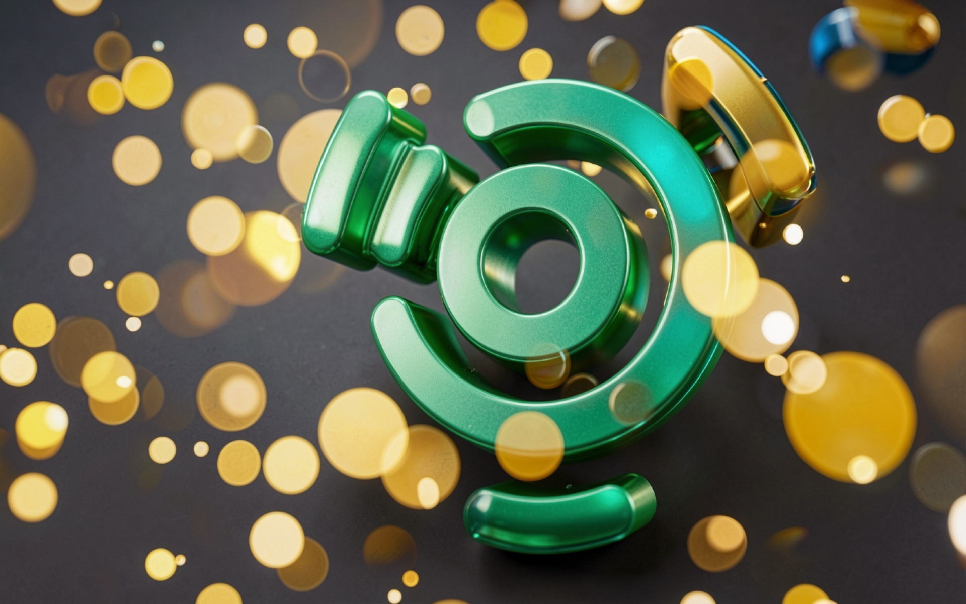 Зеленый глянцевый логотип OpenAI в золотых боке