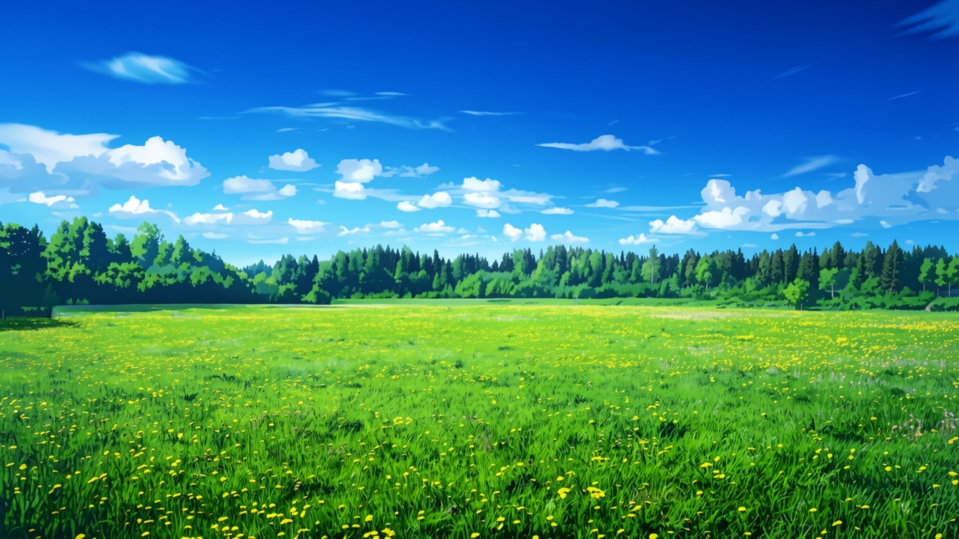 Зеленый летний луг с желтыми цветами