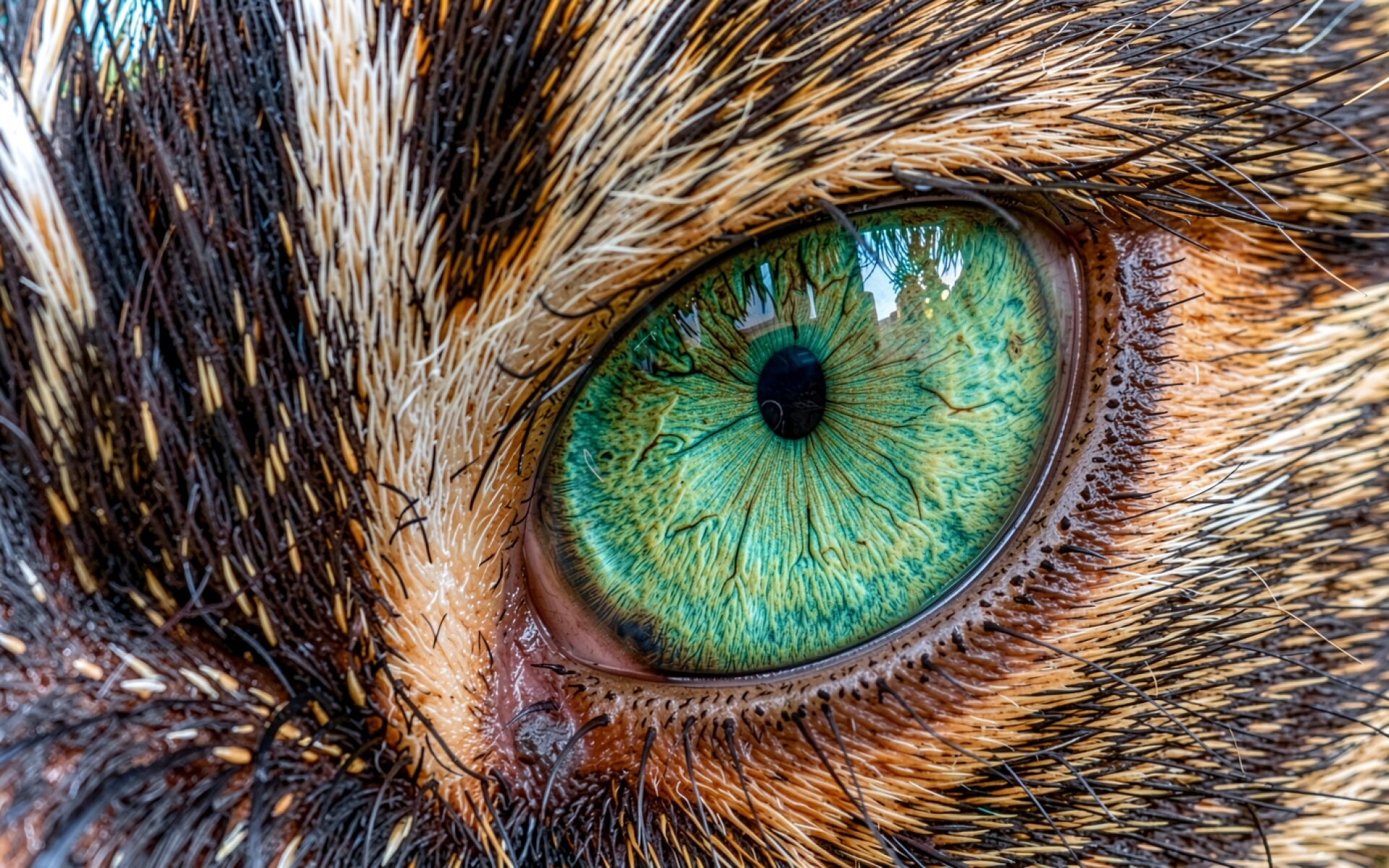 Зеленый глаз кота крупным планом макро