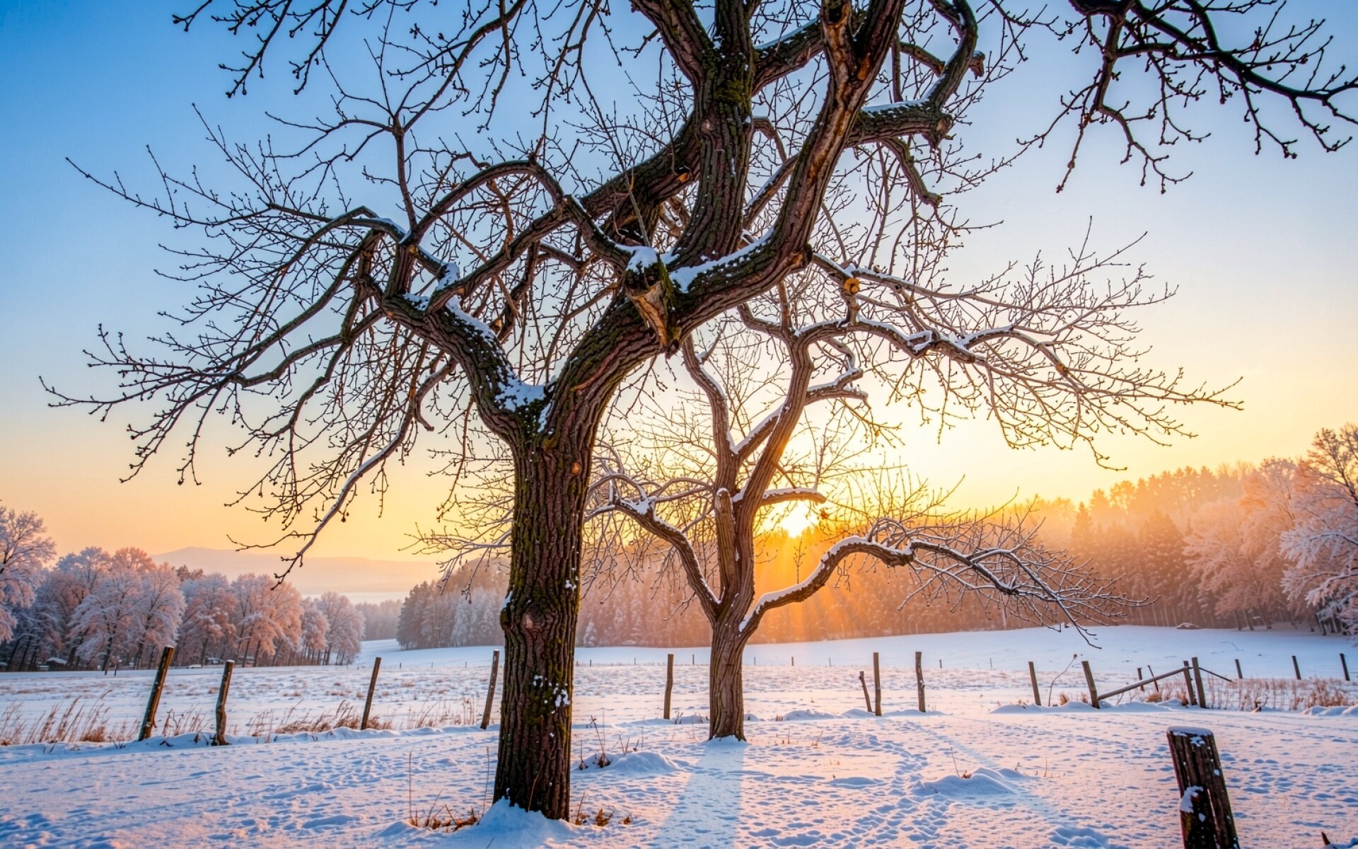 Зимние яблони обои на пк и телефон
