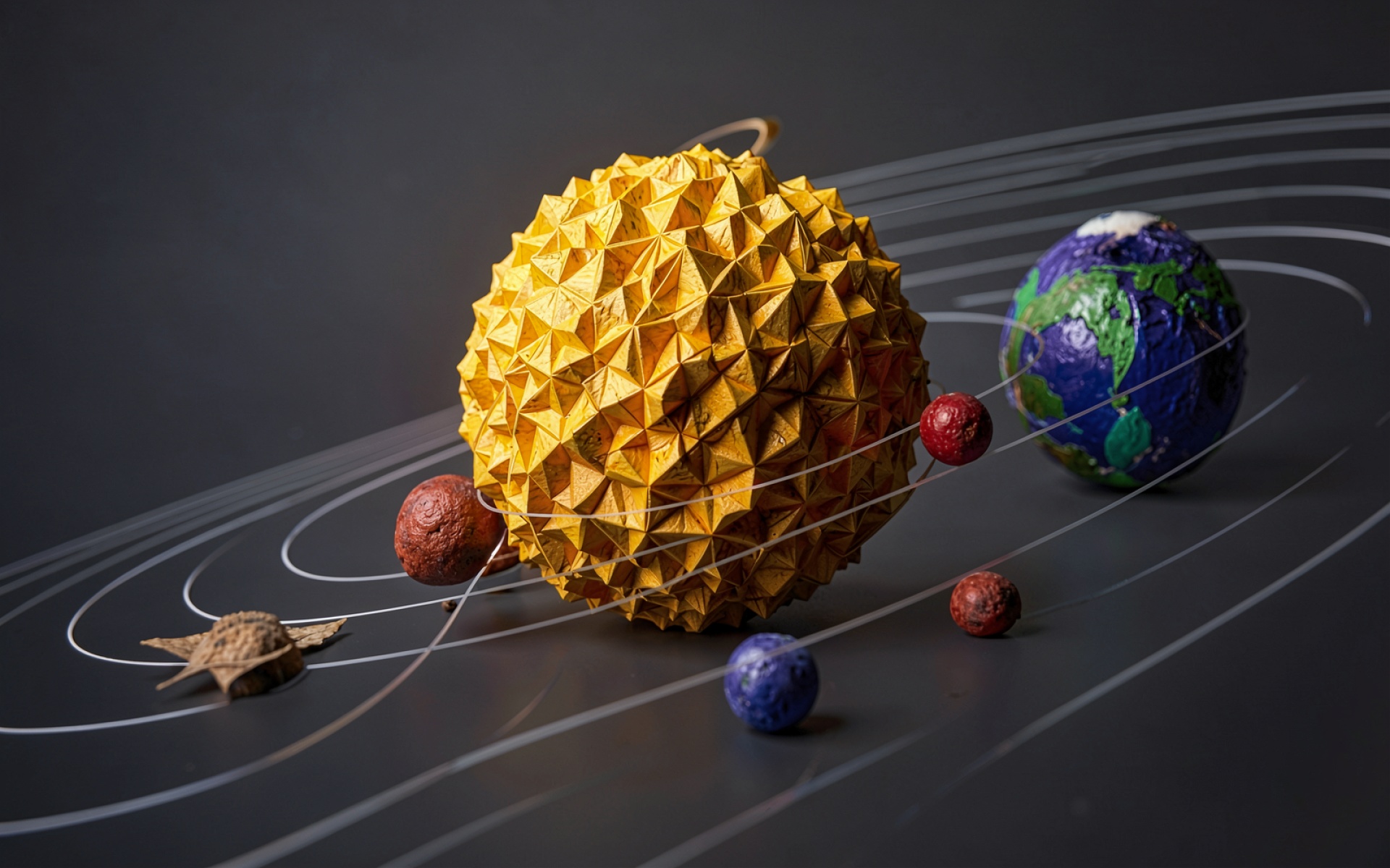 Золотая геометрическая планета в космическом пространстве