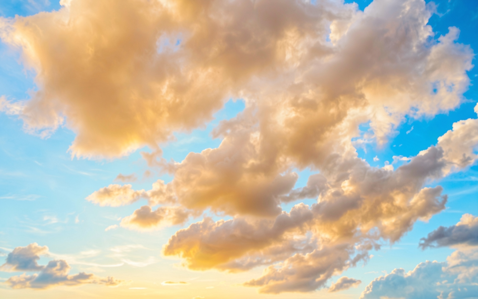 Золотистые кучевые облака в ярко-голубом небе