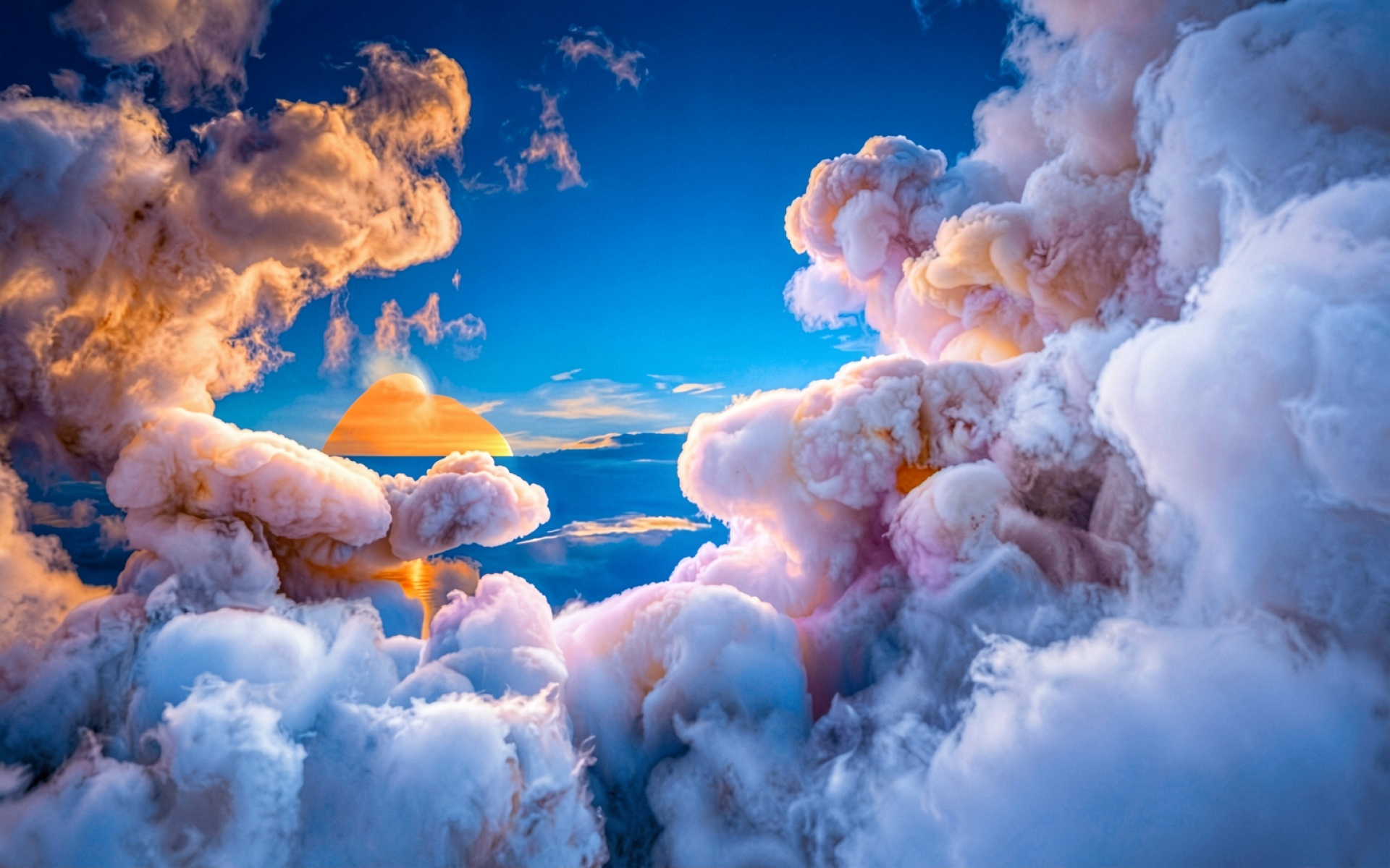 Золотое солнце в белых кучевых облаках