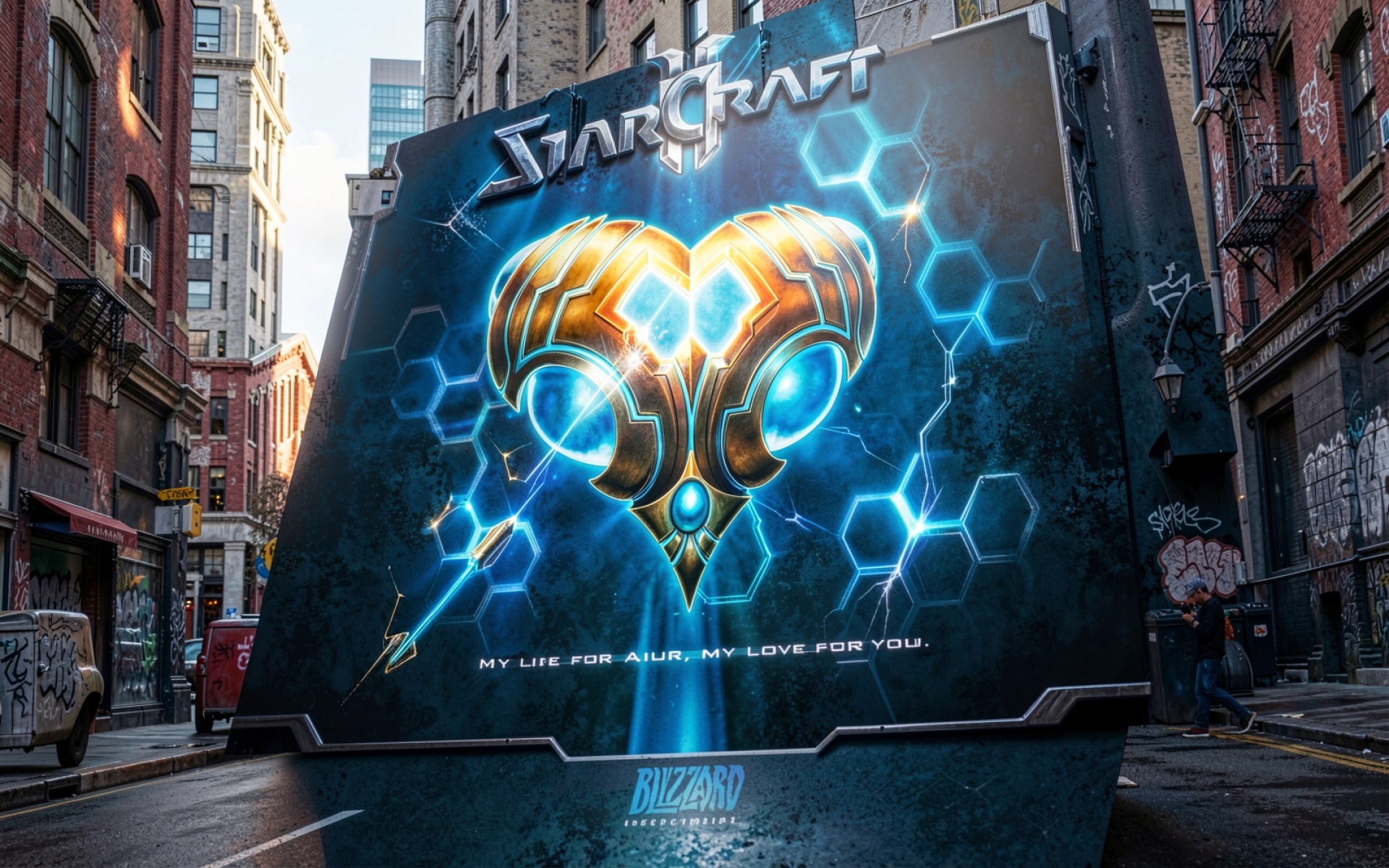 Арт StarCraft золотое сердце синий фон