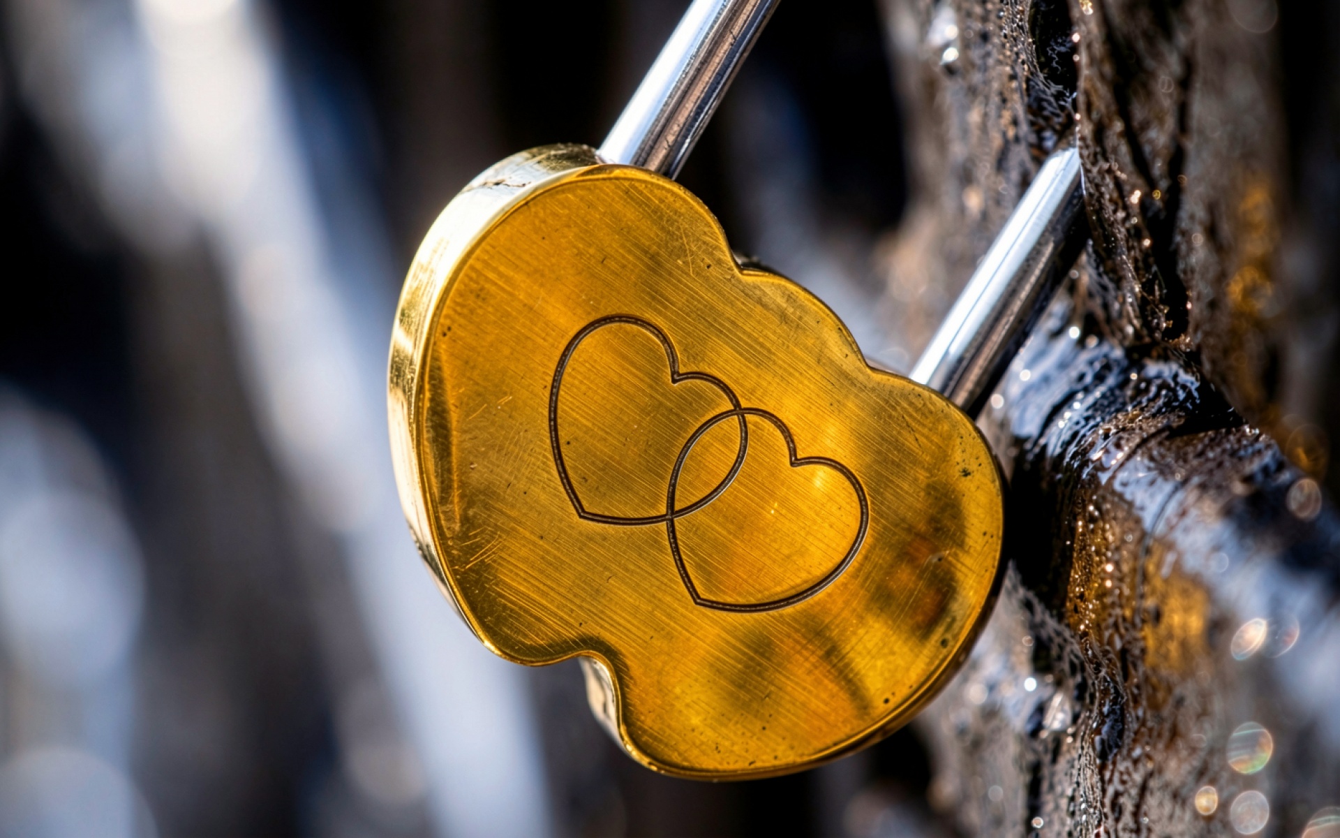 Золотой замок с сердцами на темном фоне