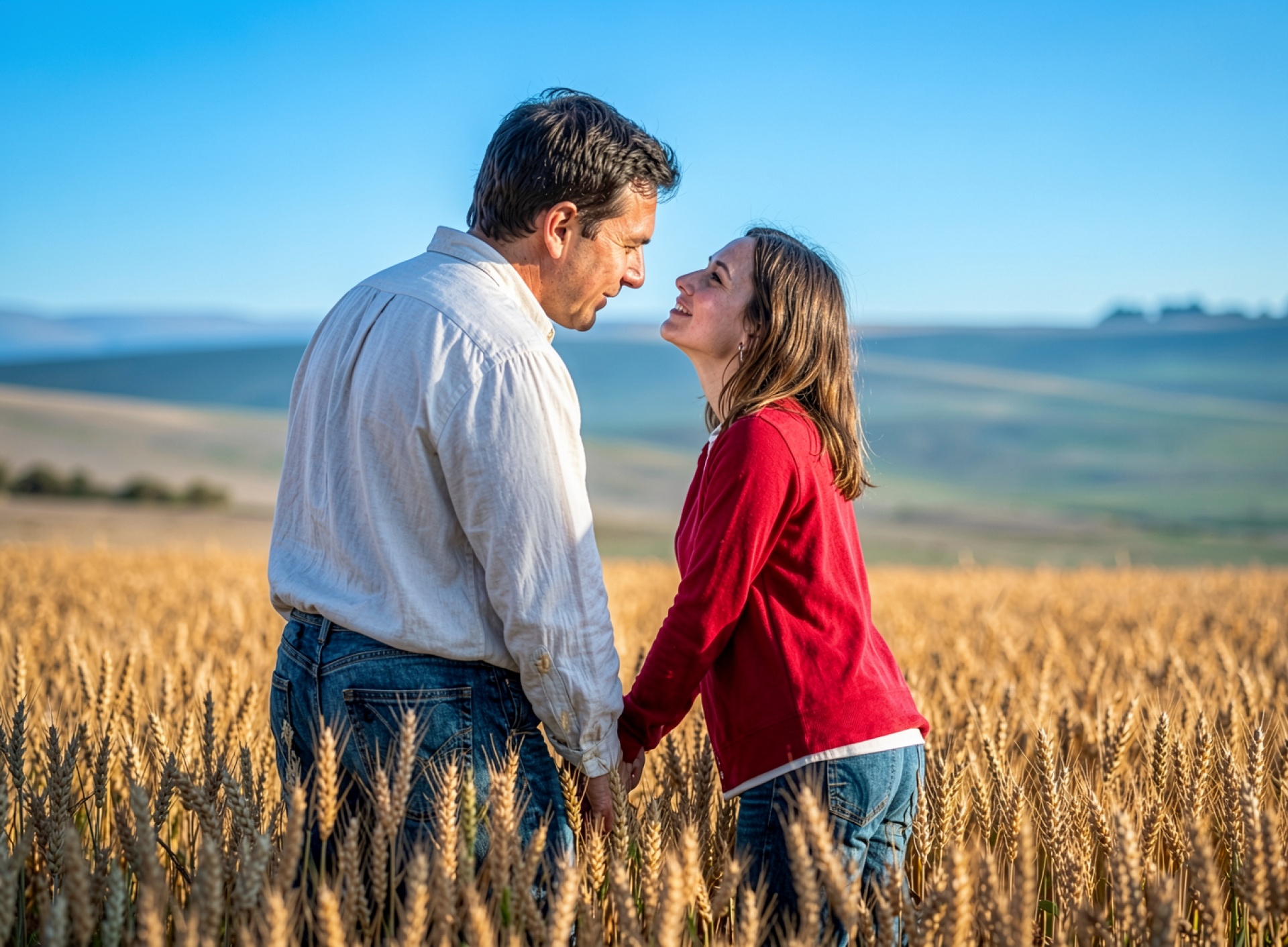 Влюбленная пара в золотом пшеничном поле