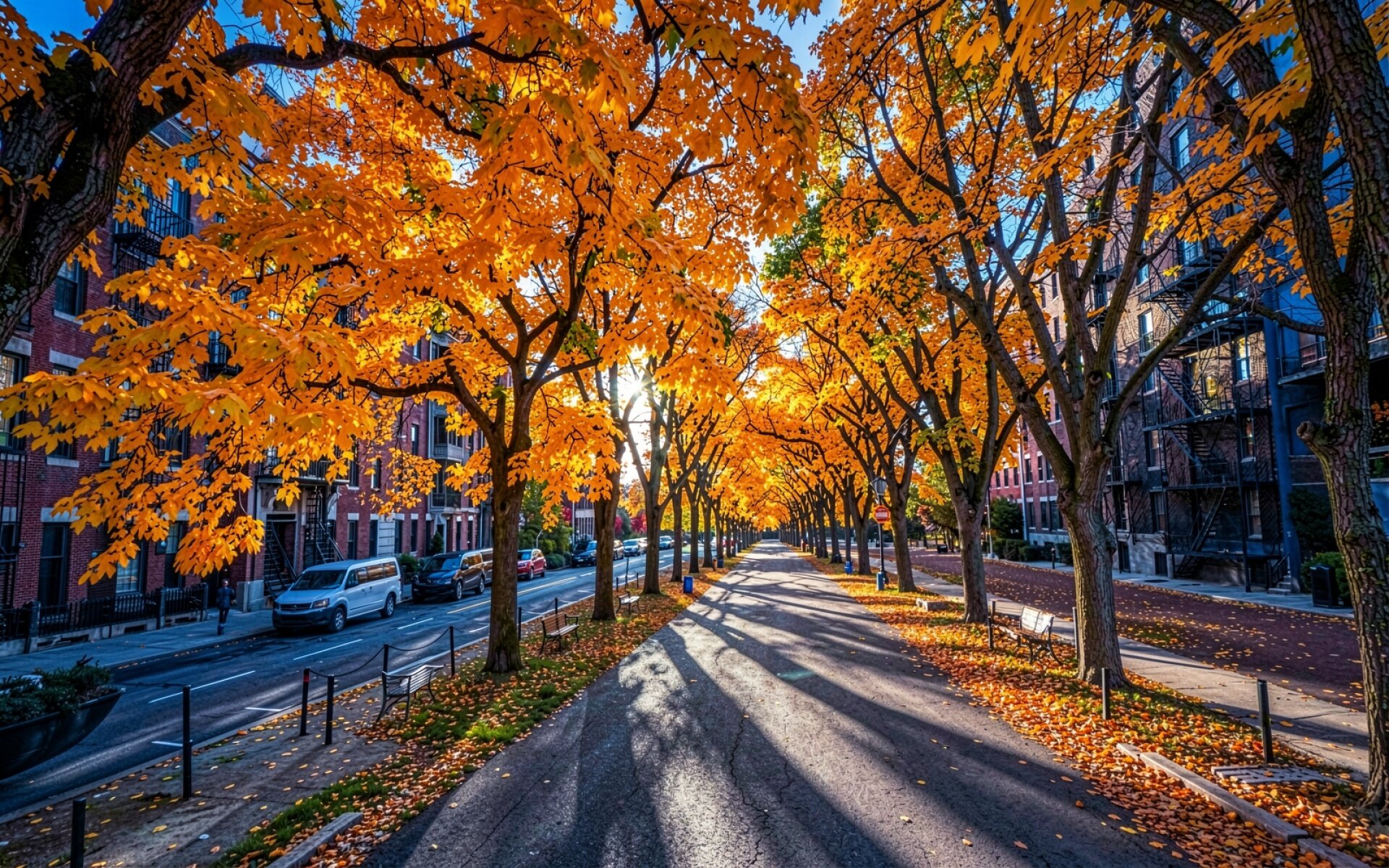 Осенняя улица Нью-Йорка золотые клены