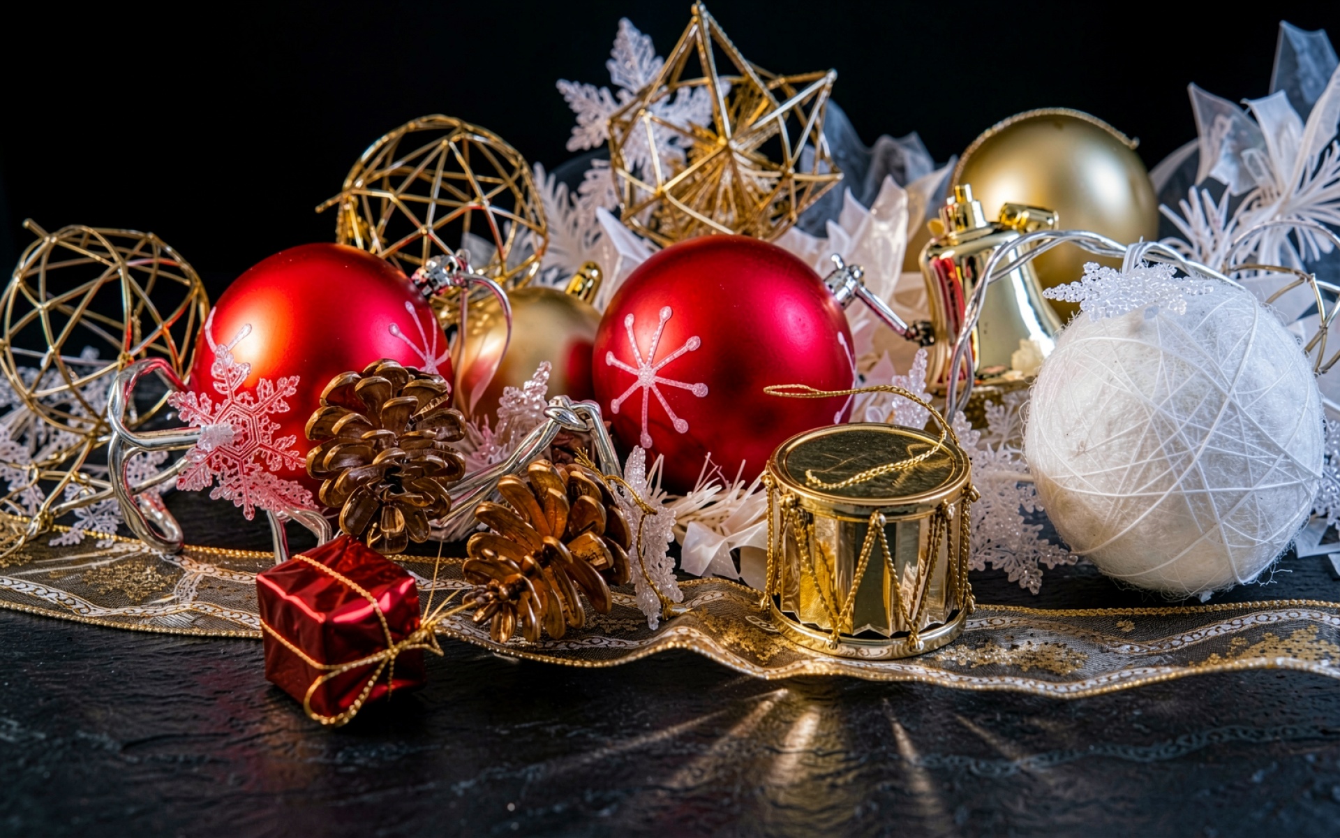 Рождественский натюрморт красные золотые шары