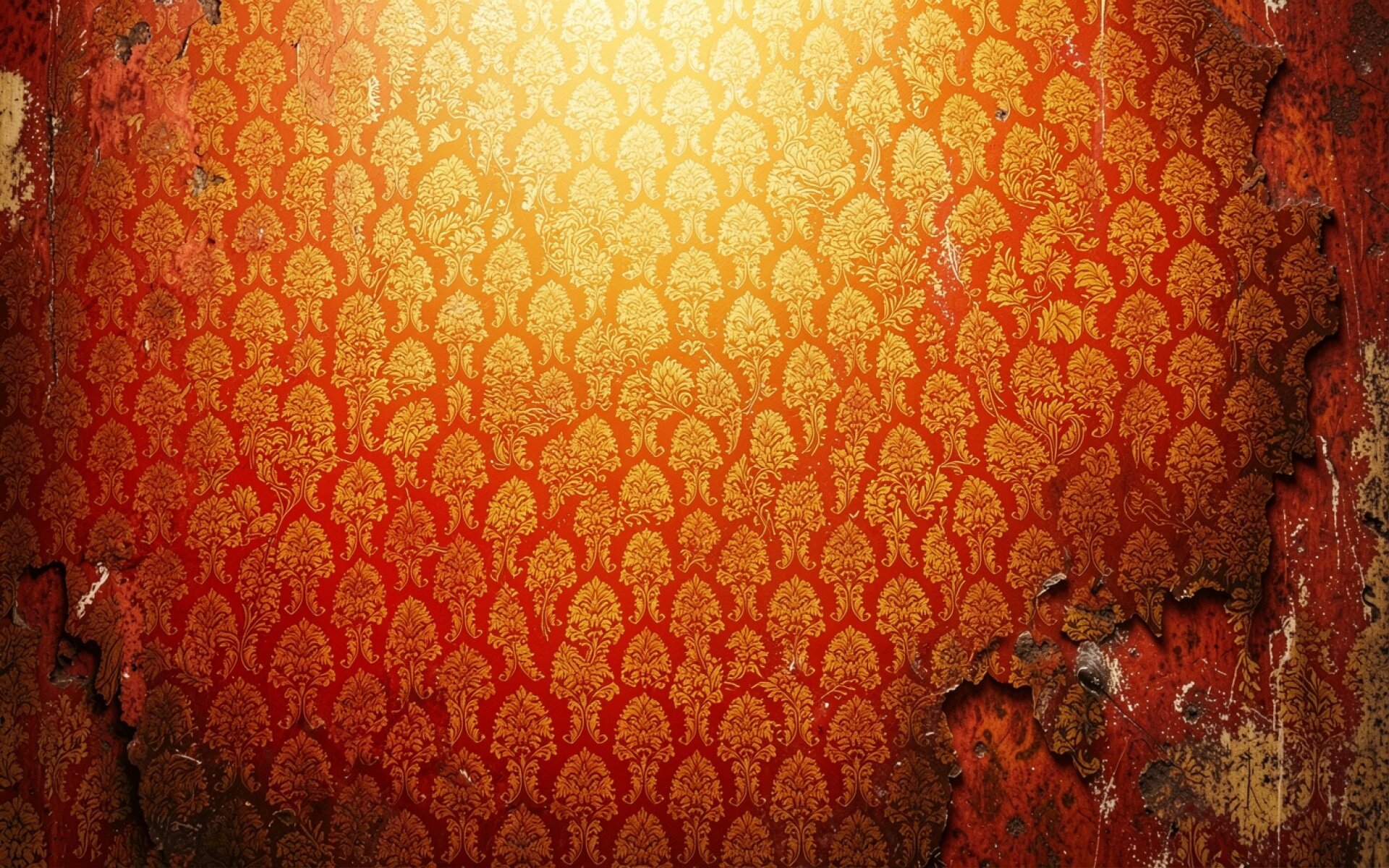 Старые красные обои с золотым узором