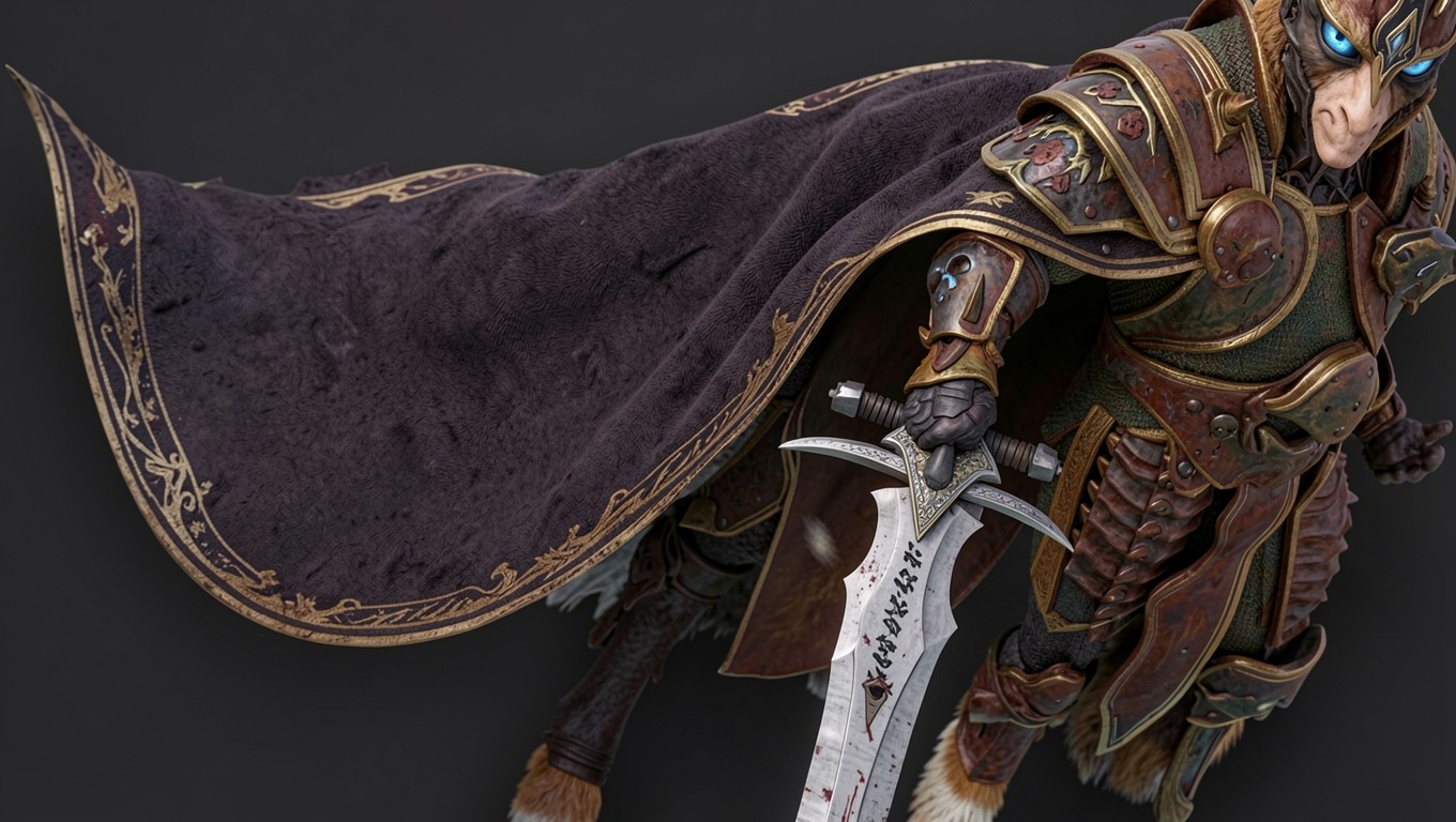 Воин антропоморфный лев в золотых доспехах