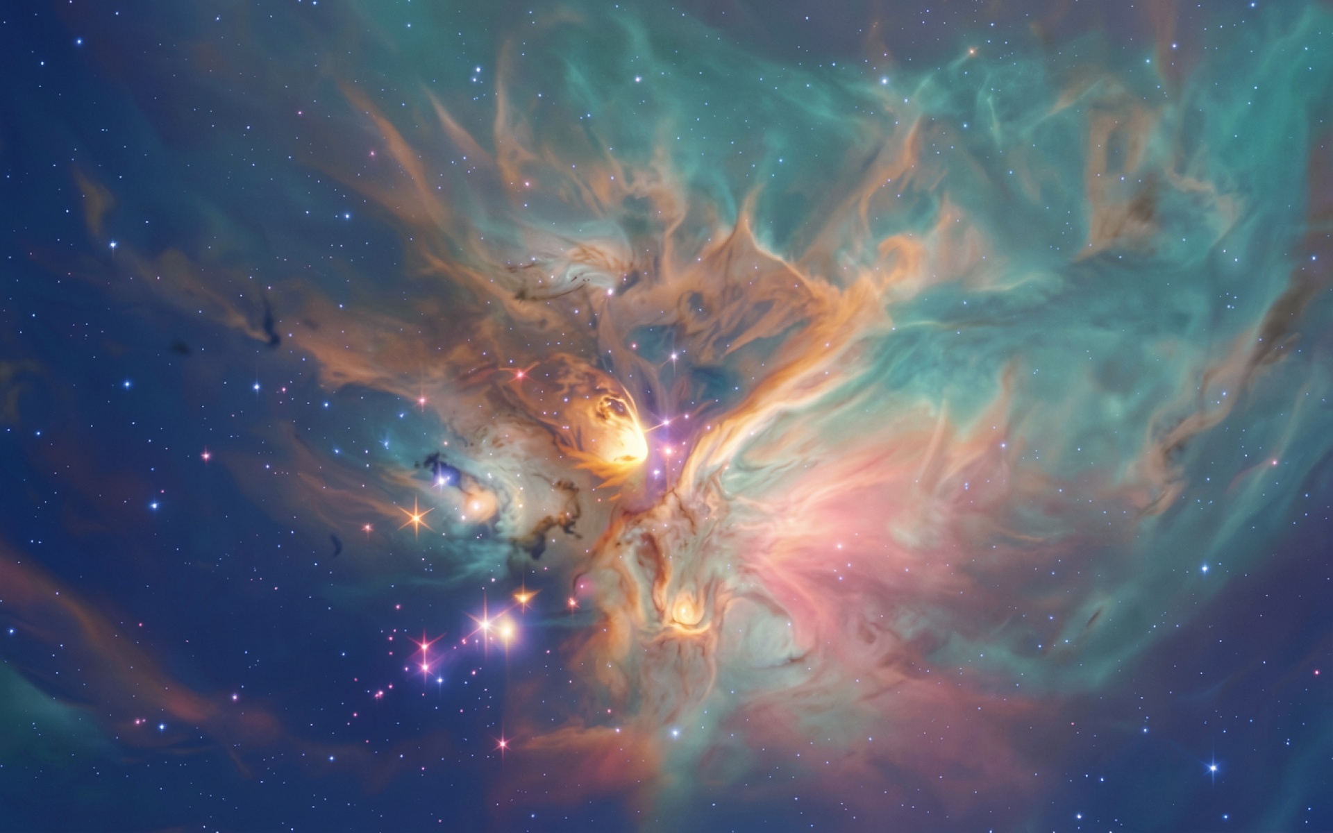 Космическая туманность в синих и золотых тонах