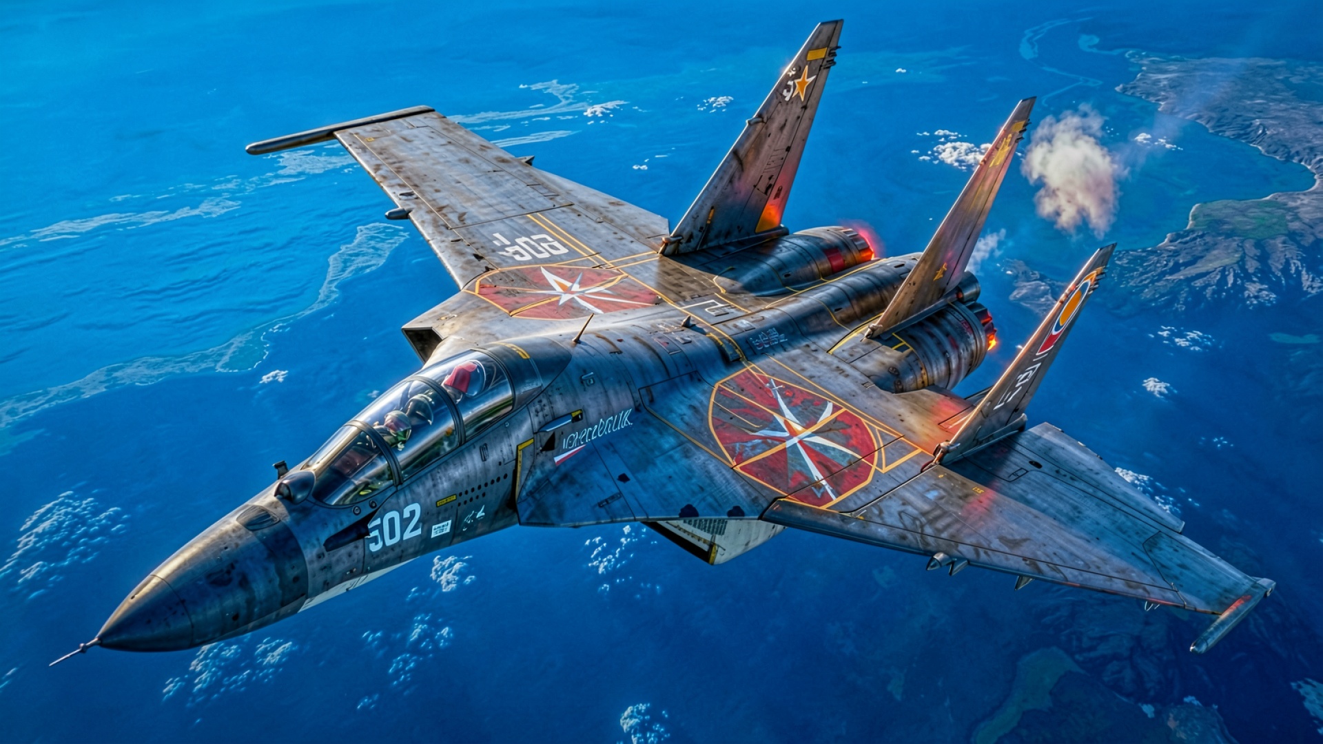 Истребитель Су-27 серый стальной над океаном