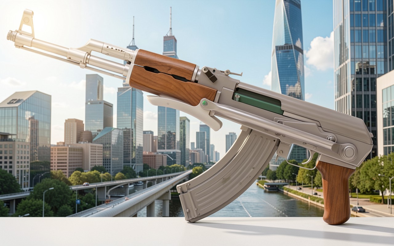 Автомат Калашникова стальной серый город
