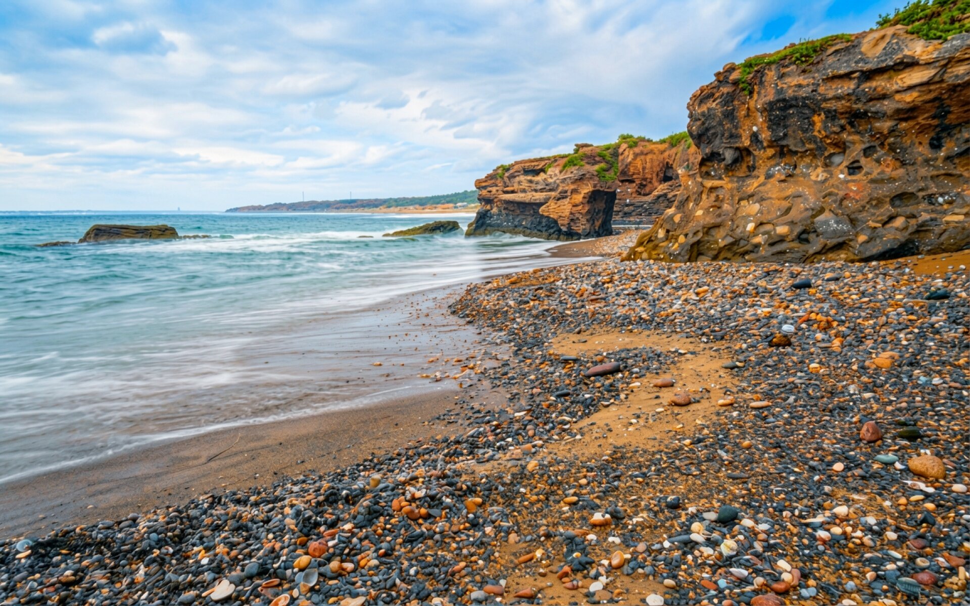 Каменистый берег океана с оранжевыми скалами