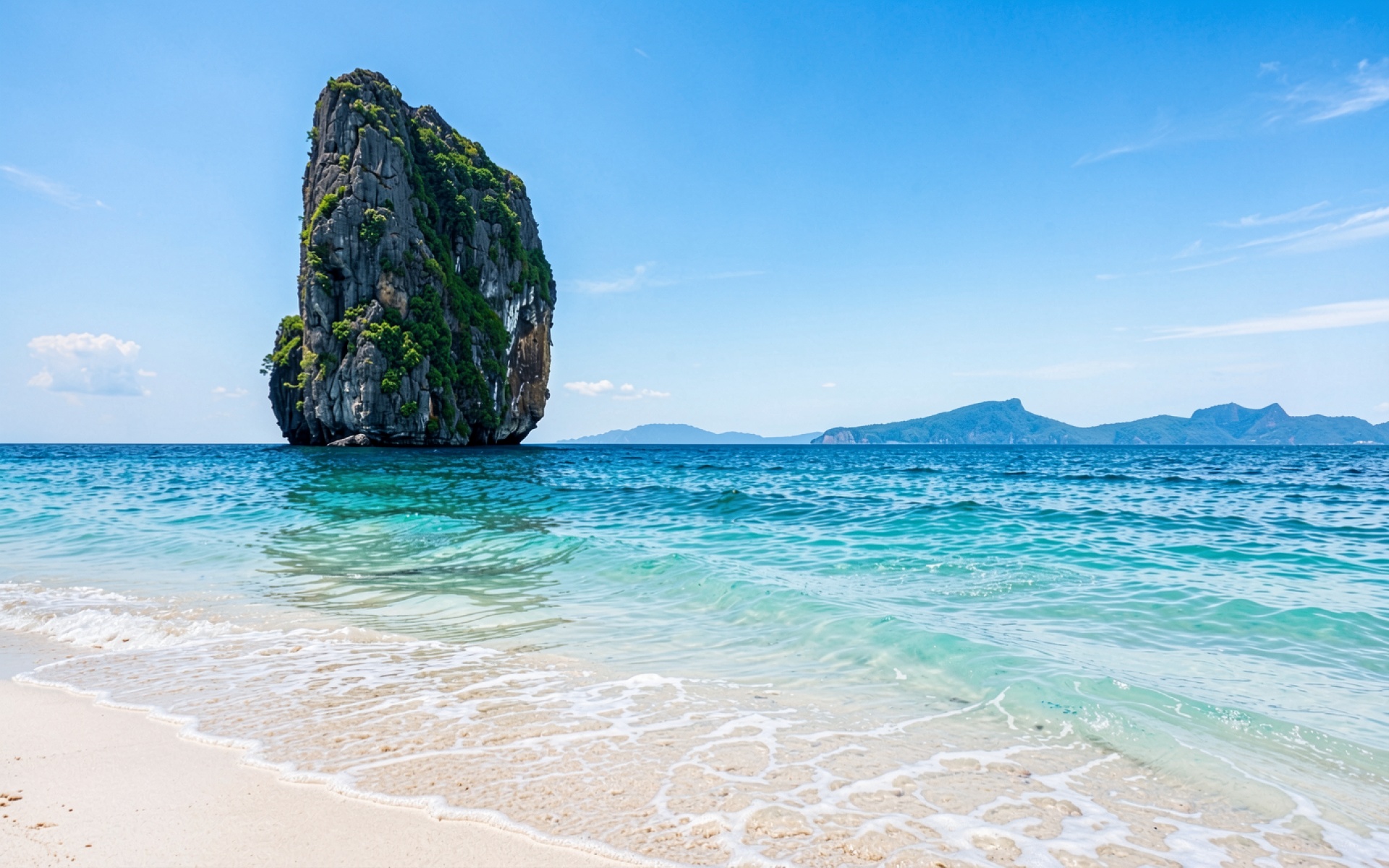 Каменная скала в бирюзовой воде тропического пляжа