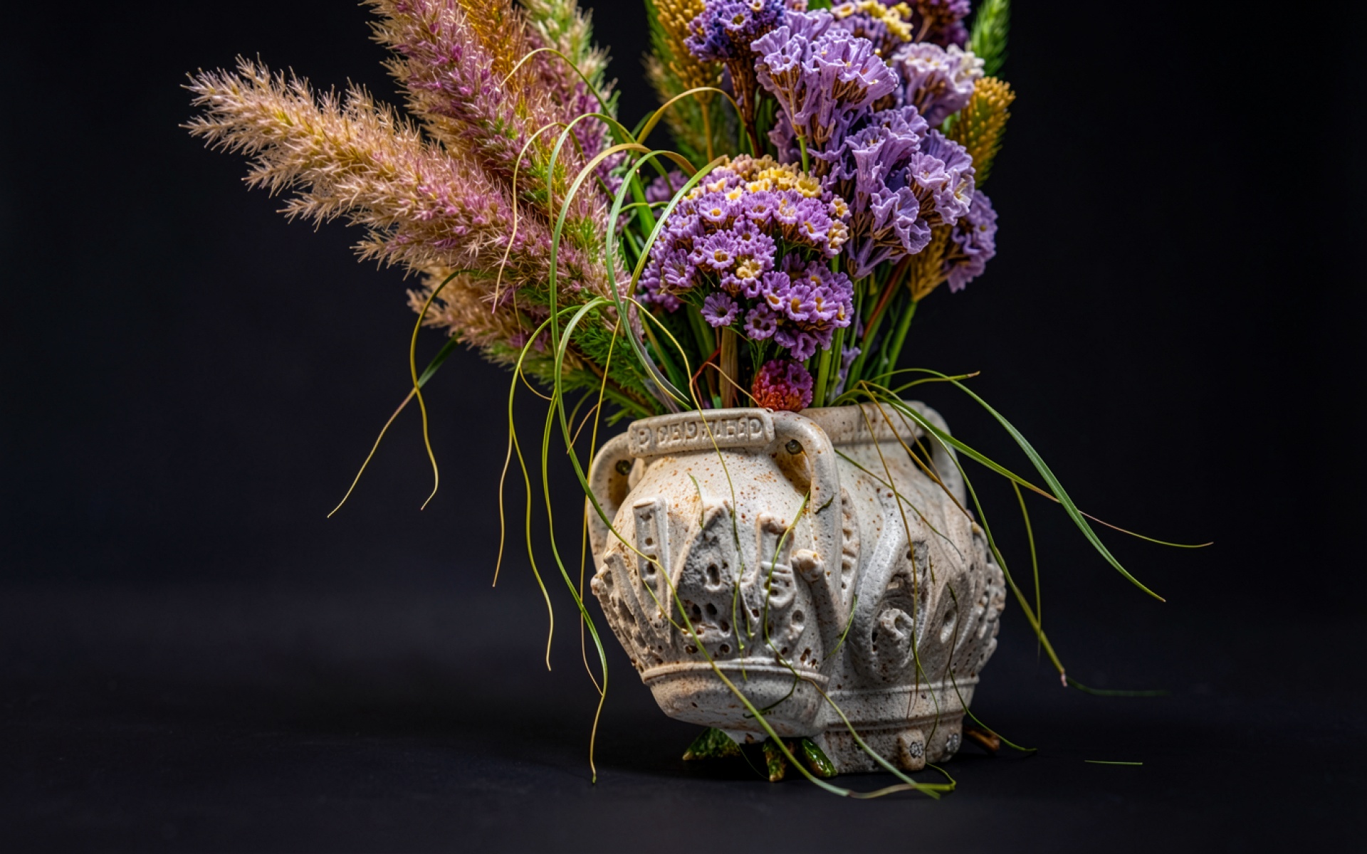 Букет из сухих цветов в каменной вазе