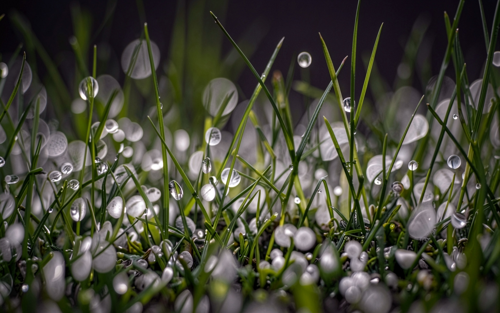 Капли росы на зеленой траве макро