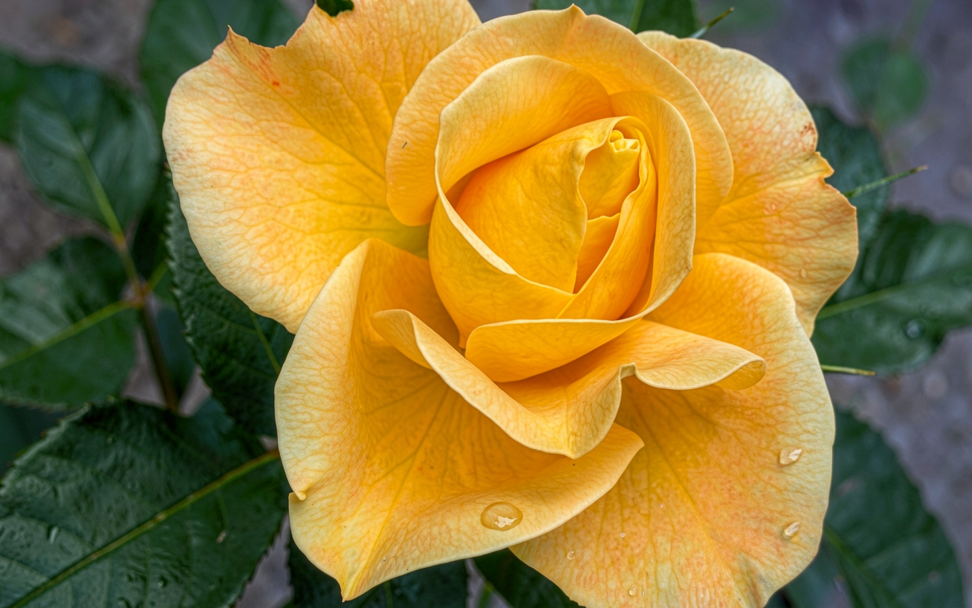 Желтая роза с каплями росы крупным планом