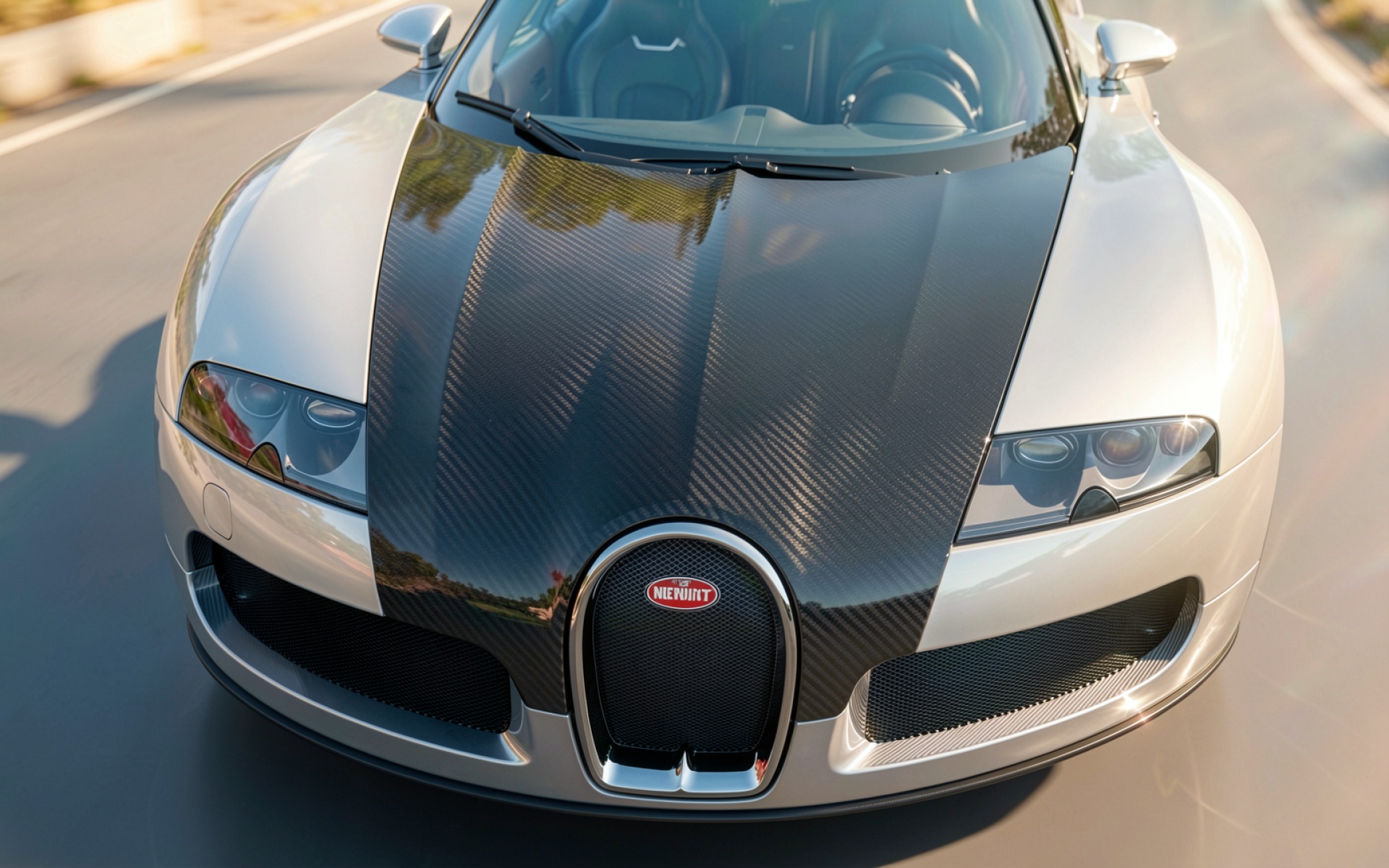 Серебристый Bugatti Veyron с карбоновым капотом